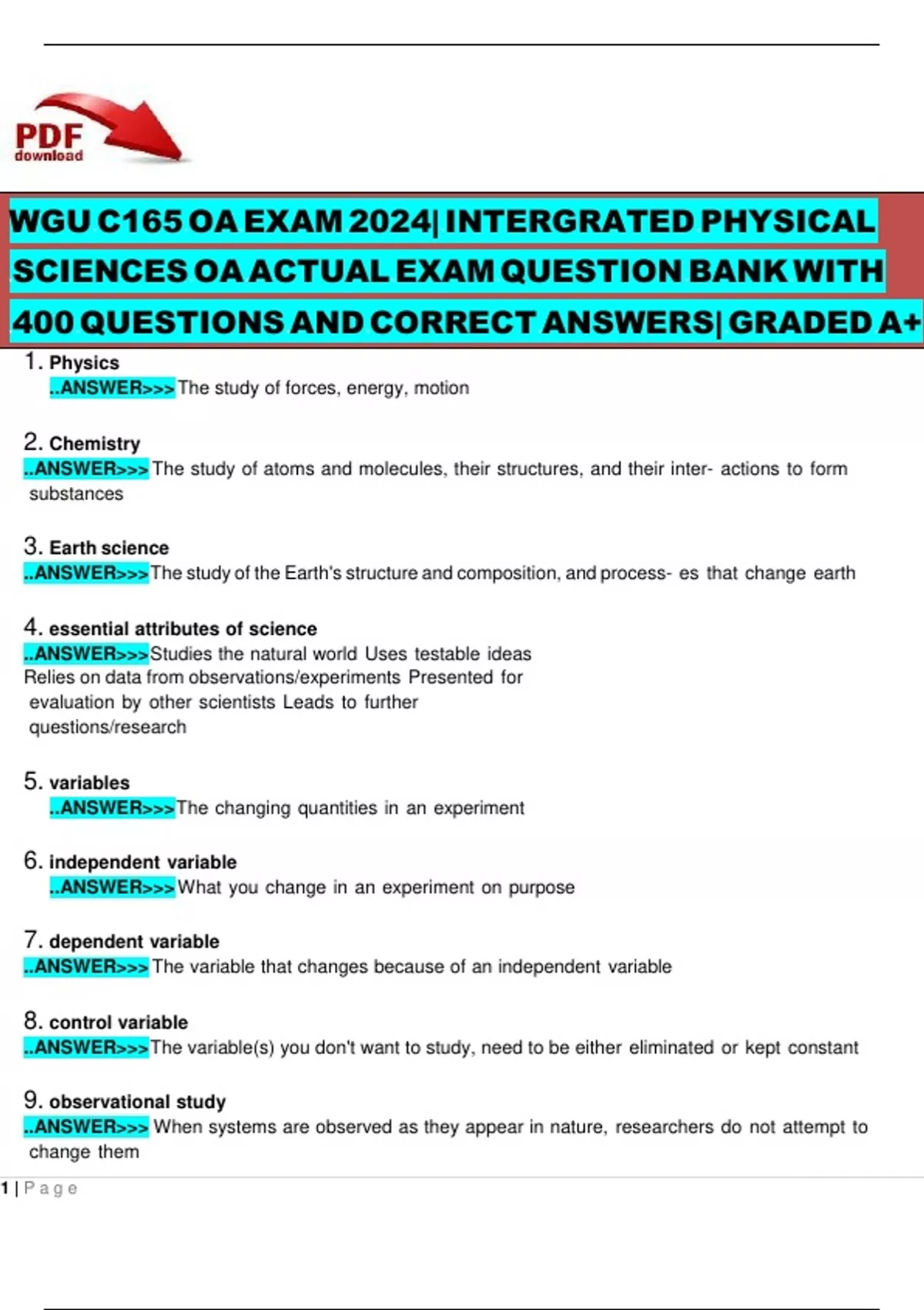 SCIENCES OA ACTUAL EXAM QUESTION BANK WITH
