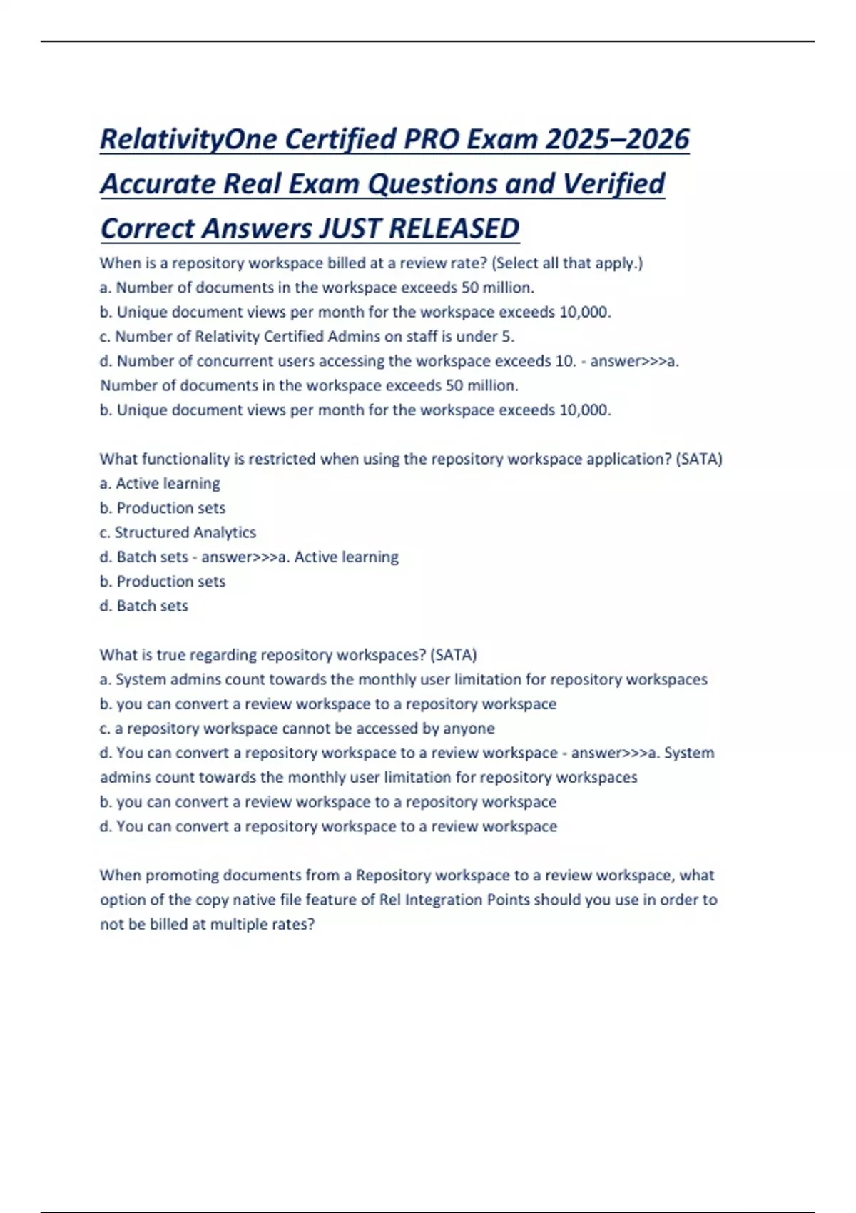 d. You can convert a repository workspace to a review workspace - answer>>>a. System