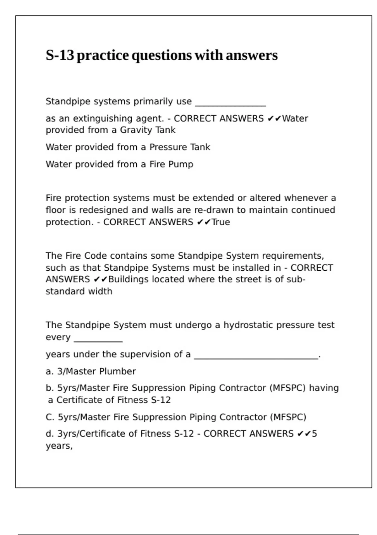 certificate? - CORRECT ANSWERS ✔✔Sprinkler Systems S-12 |\ |\ |\ |\ |\ |\ |\