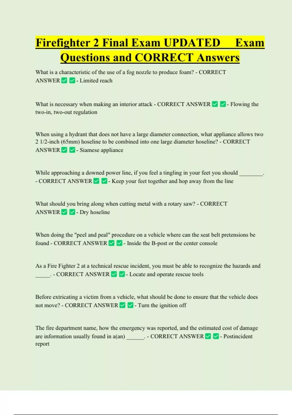 Firefighter 2 Final Exam UPDATED Exam