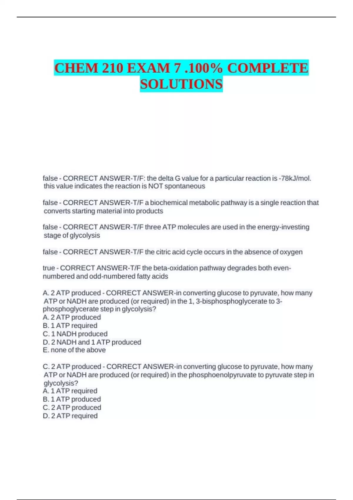 C. 2 ATP produced - CORRECT ANSWER-in converting glucose to pyruvate, how many