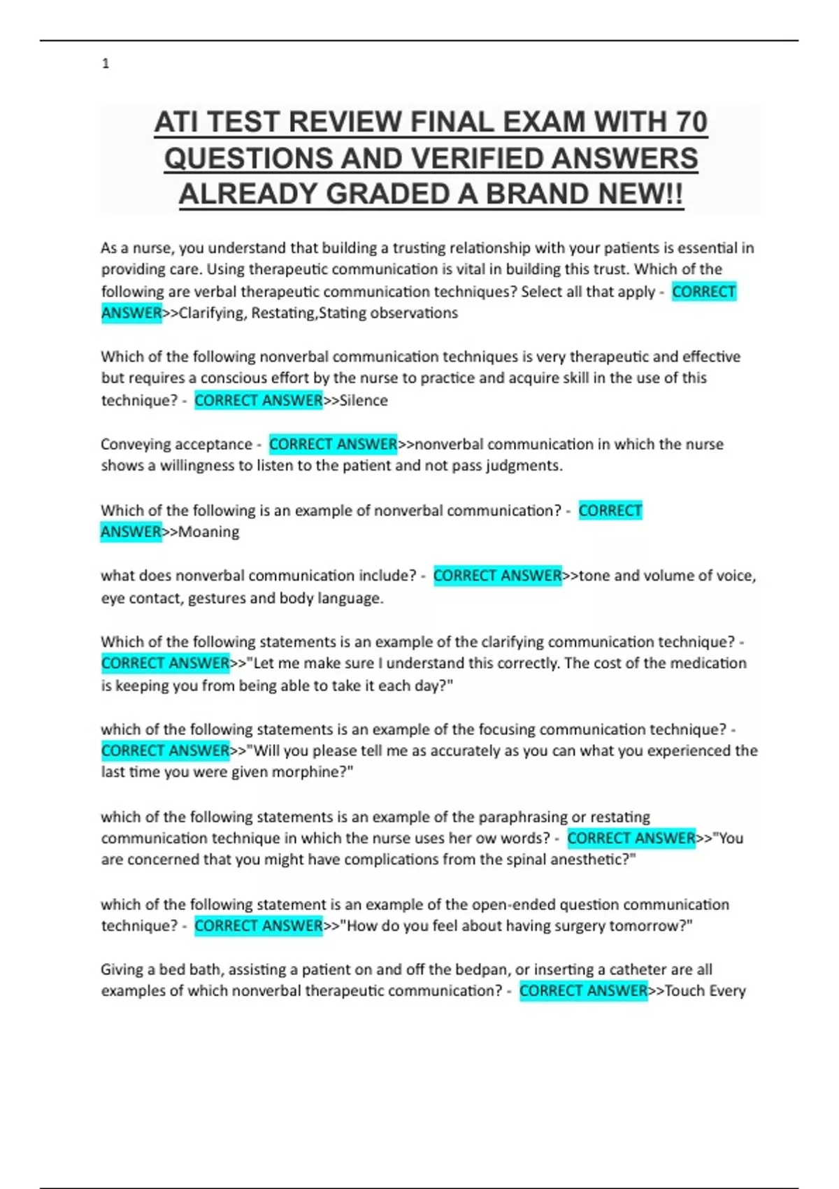 ATI TEST REVIEW FINAL EXAM WITH 70