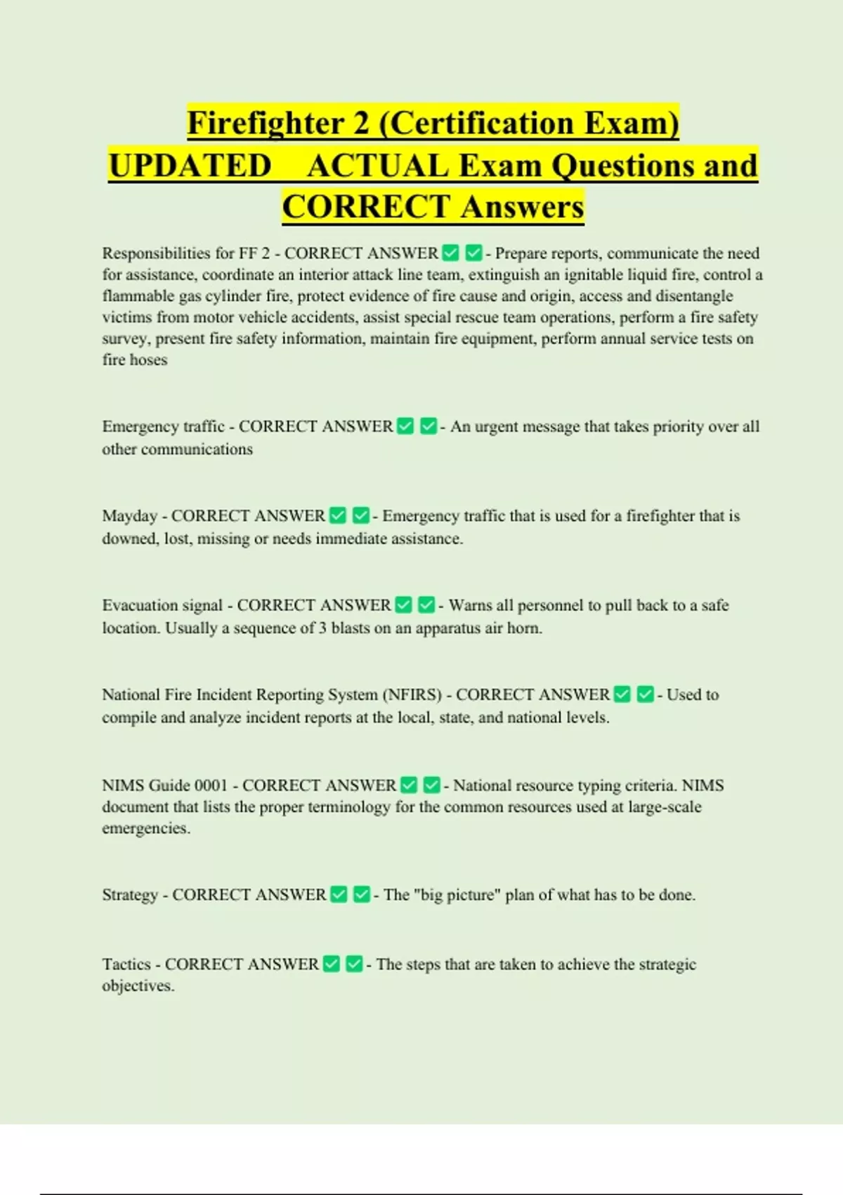 Firefighter 2 (Certification Exam) UPDATED ACTUAL Exam Questions and CORRECT Answers