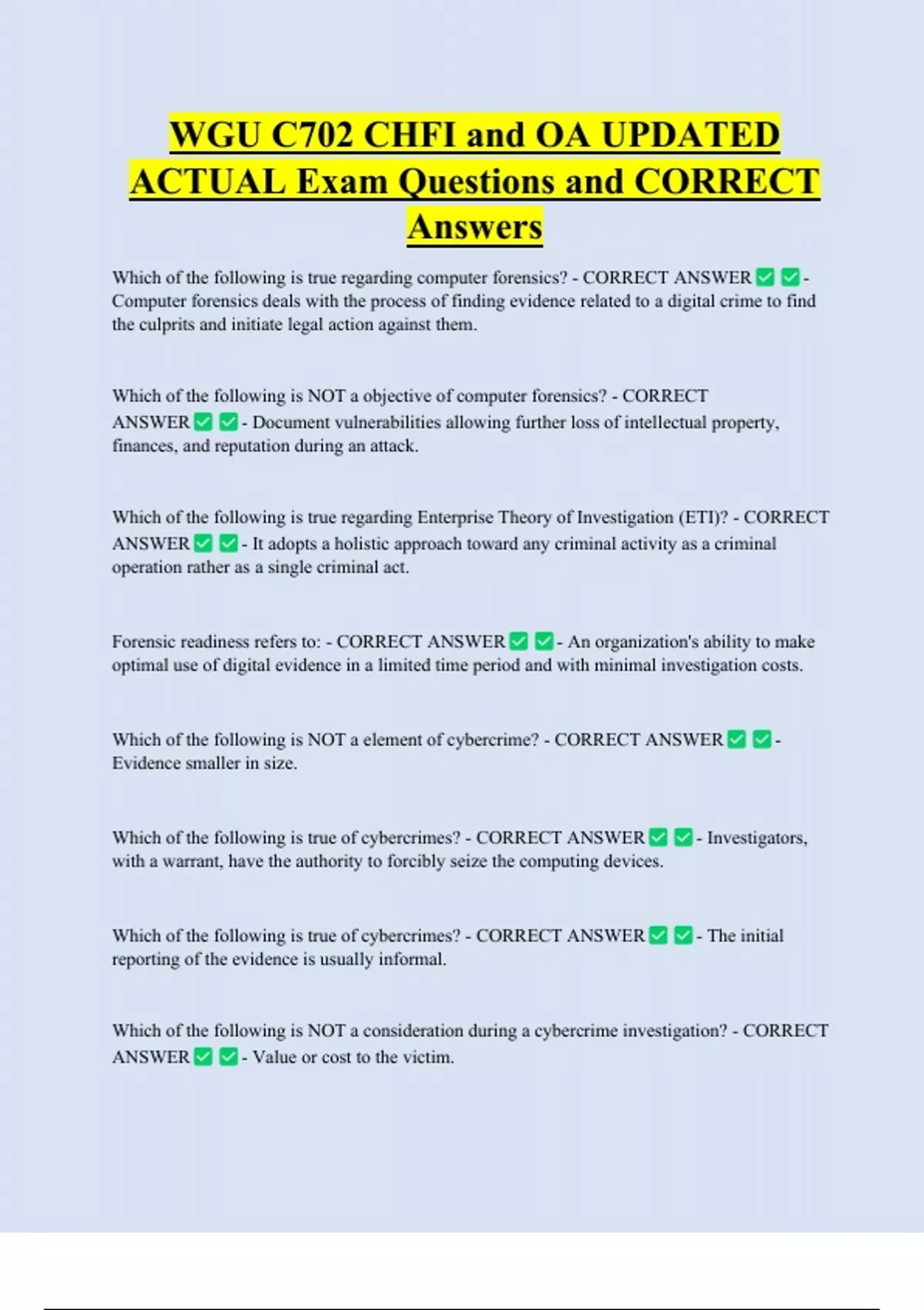 an essential computer forensics use. - CORRECT ANSWER - True.