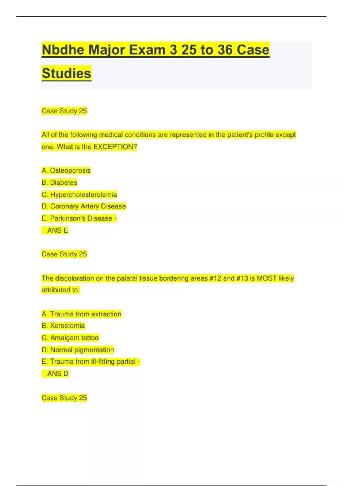 Nbdhe Major Exam 3 25 to 36 Case