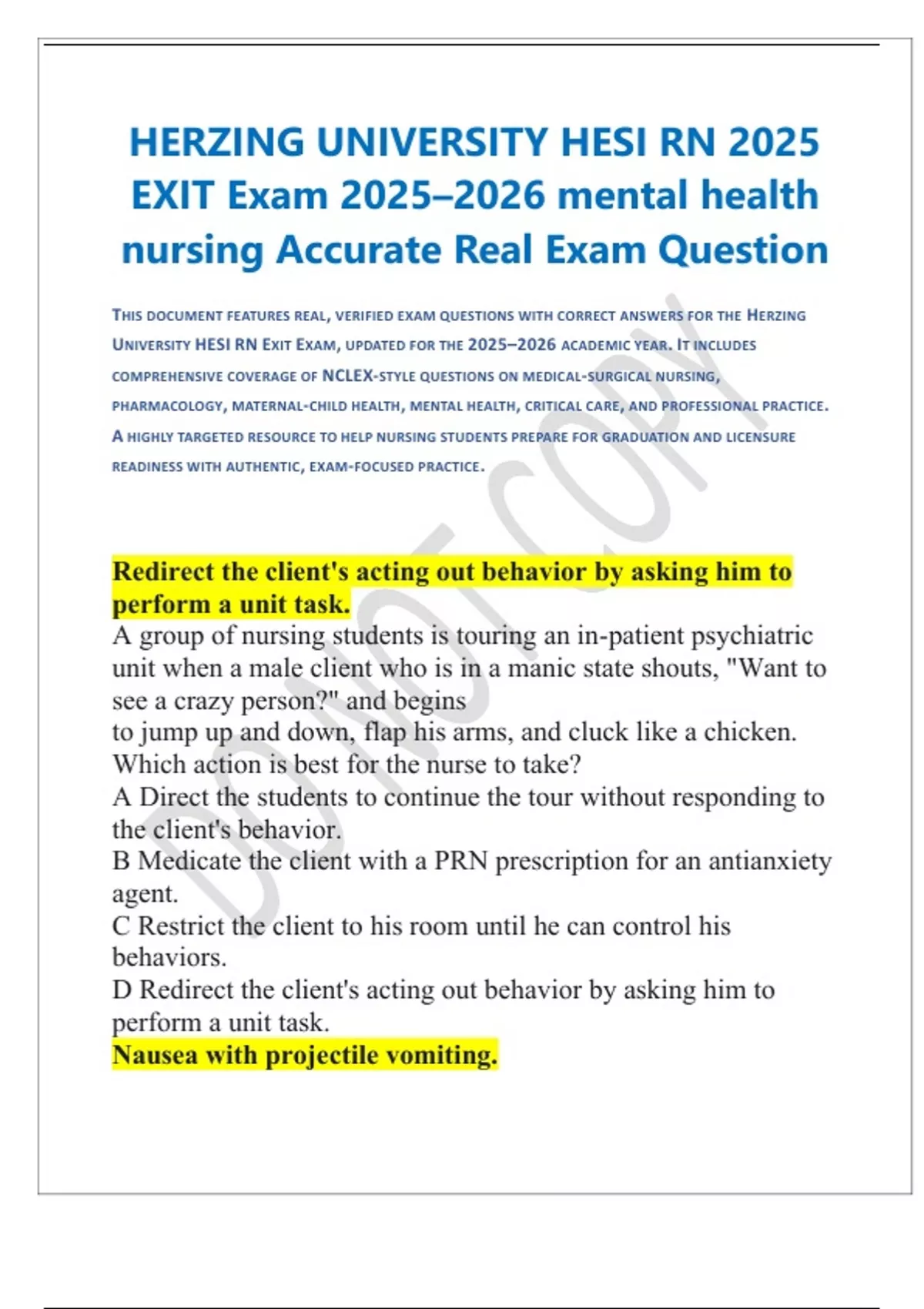 THIS DOCUMENT FEATURES REAL , VERIFIED EXAM QUESTIONS WITH CORRECT ANSWERS FOR THE HERZING