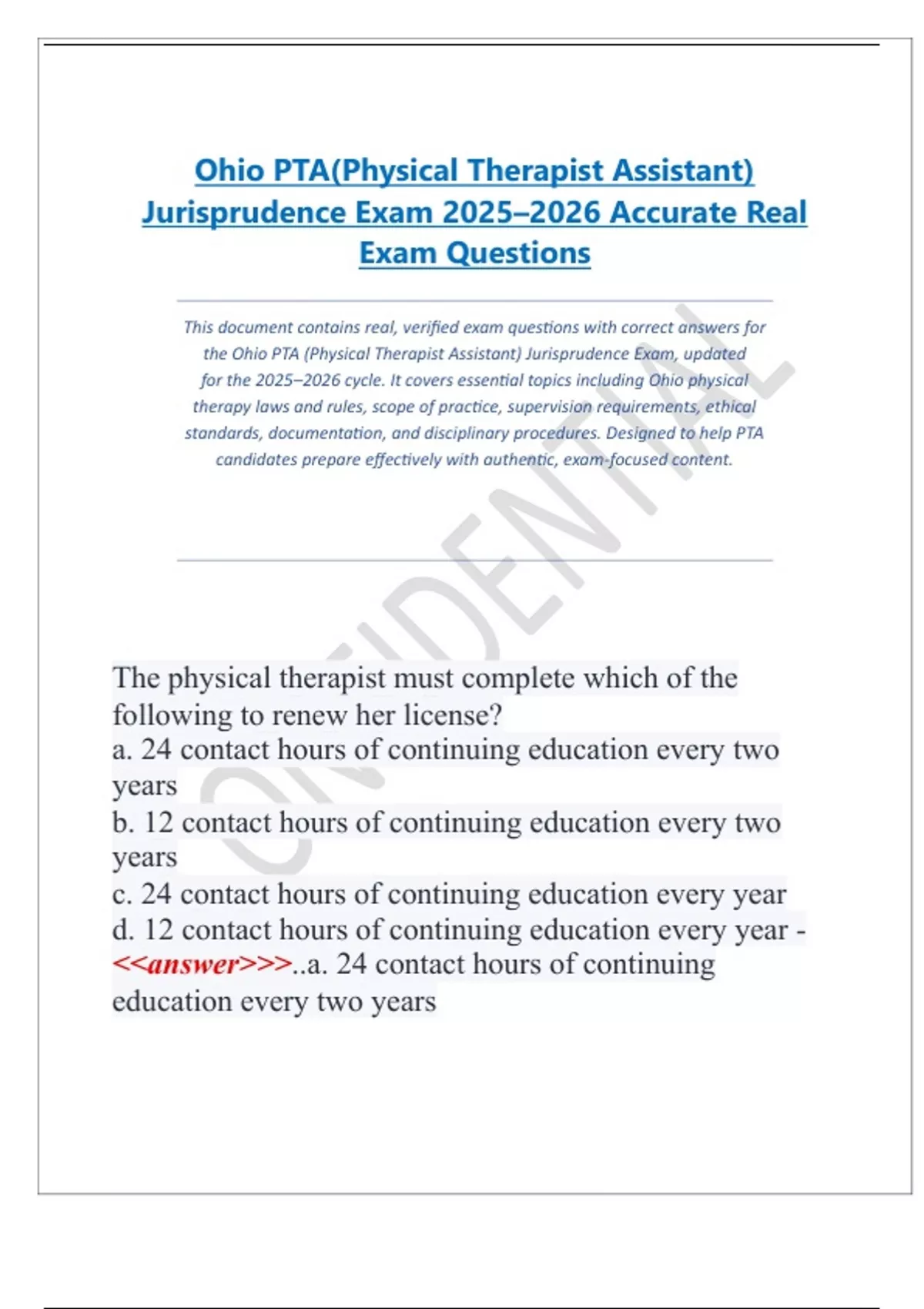 the Ohio PTA (Physical Therapist Assistant) Jurisprudence Exam, updated