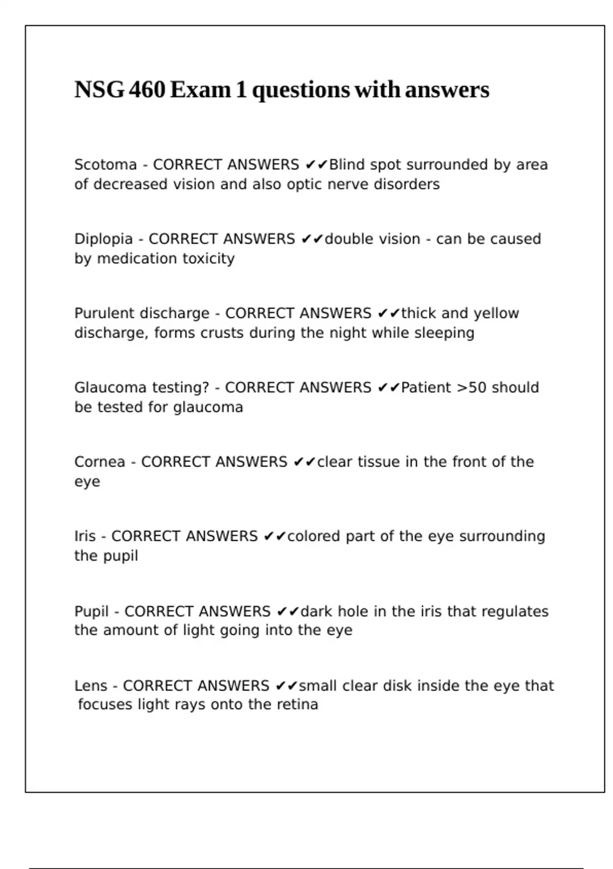 Iris - CORRECT ANSWERS ✔✔colored part of the eye surrounding