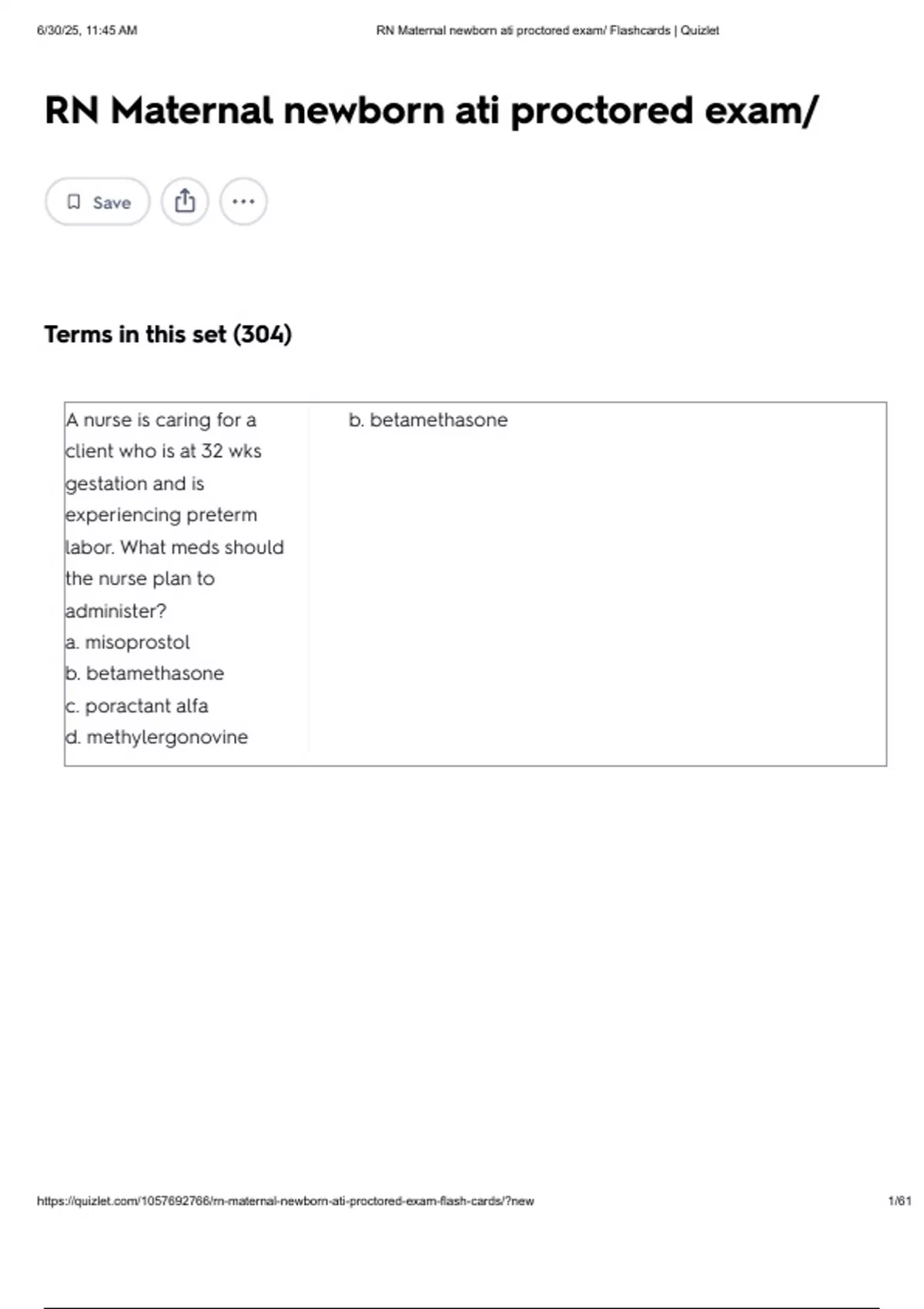 , 6/30/25, 11:45 AM RN Maternal newborn ati proctored exam/ Flashcards | Quizlet