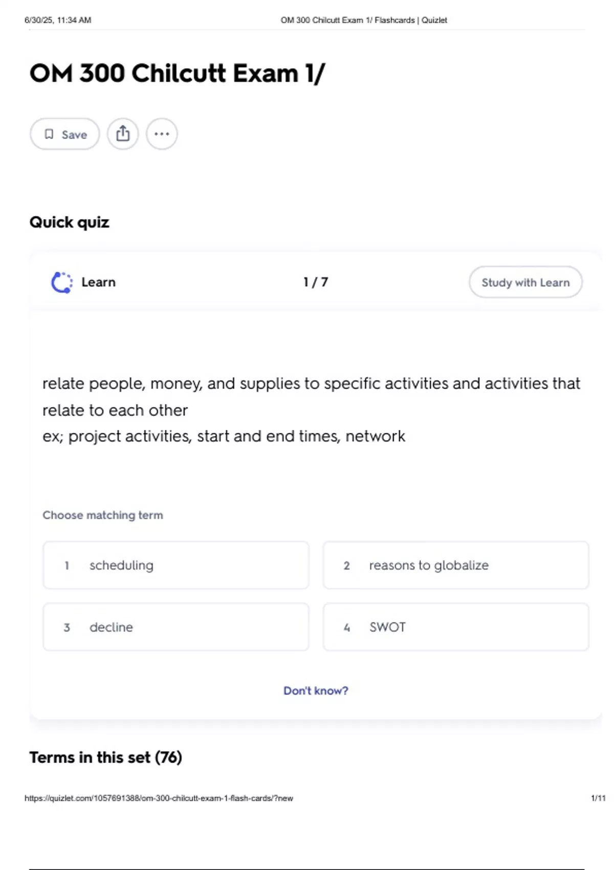 , 6/30/25, 11:34 AM OM 300 Chilcutt Exam 1/ Flashcards | Quizlet