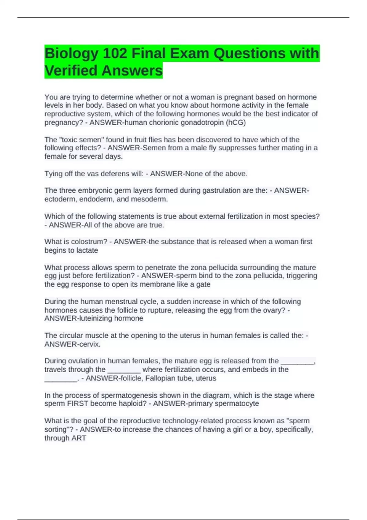 The acrosome of the sperm: - ANSWER-carries the enzymes that help digest the