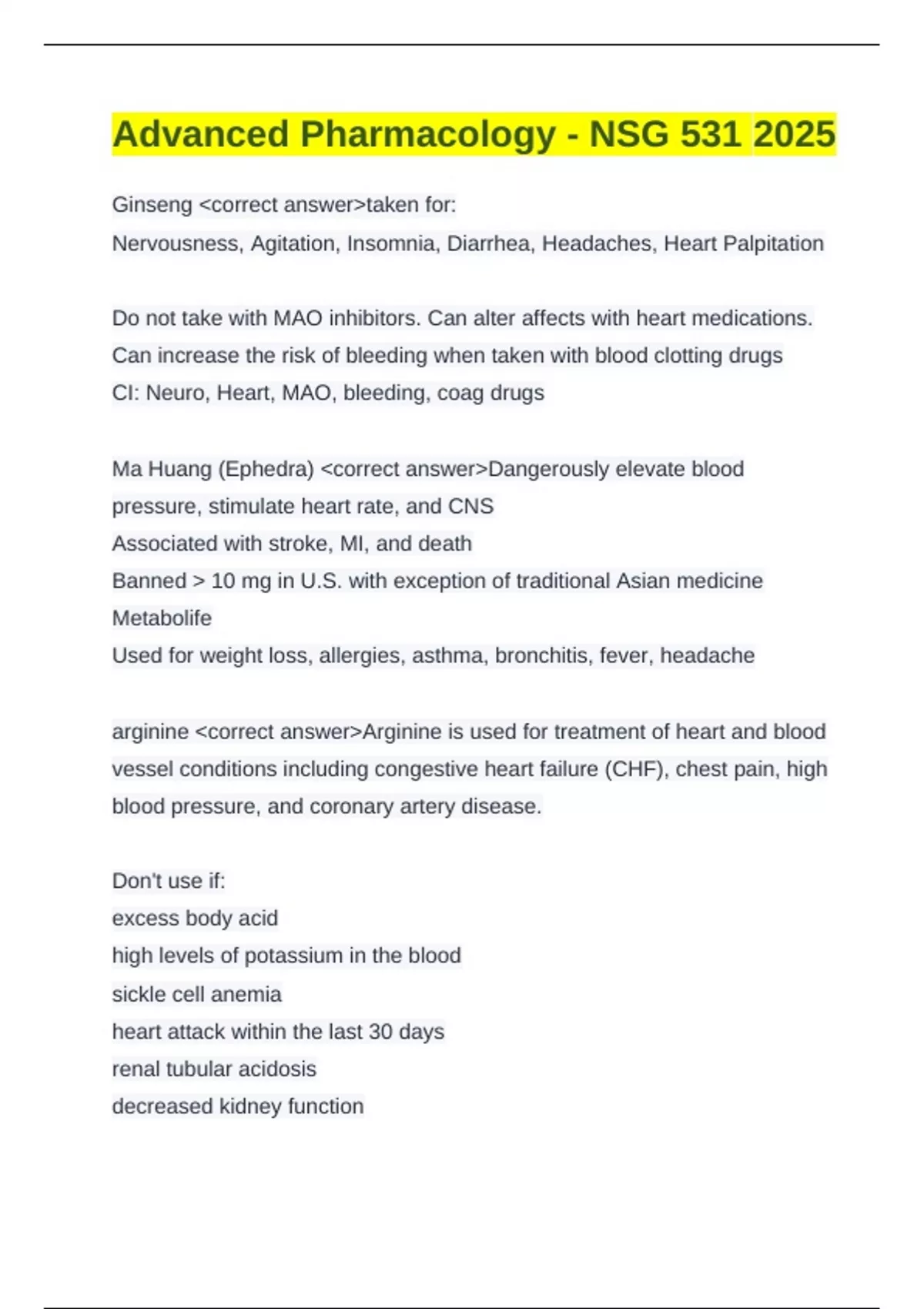 Advanced Pharmacology - NSG 531 2025