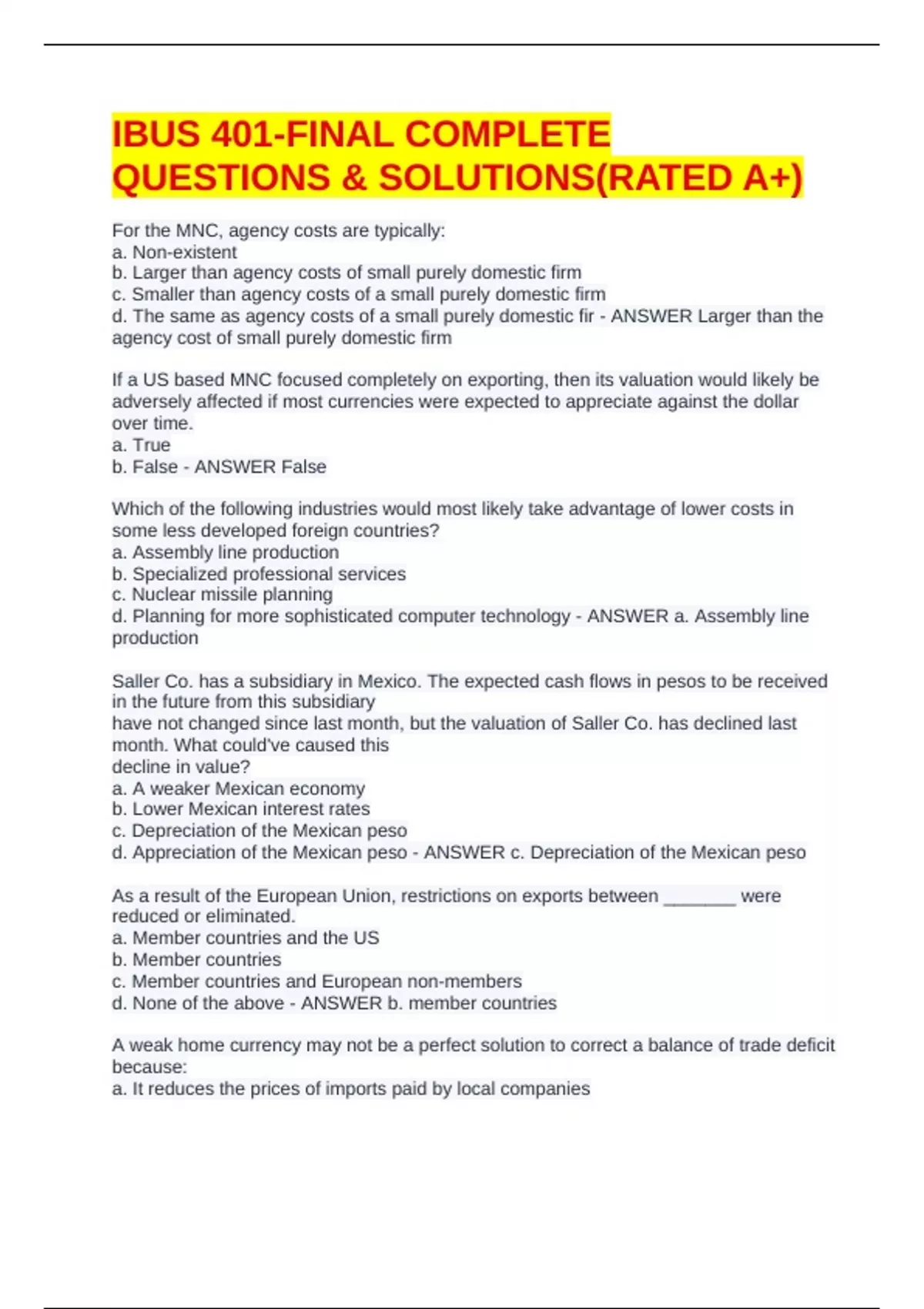 IBUS 401-FINAL COMPLETE QUESTIONS & SOLUTIONS(RATED A+)