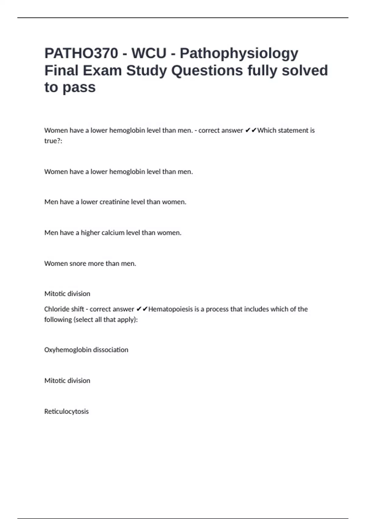 PATHO370 - WCU - Pathophysiology Final Exam Study Questions fully solved to pass