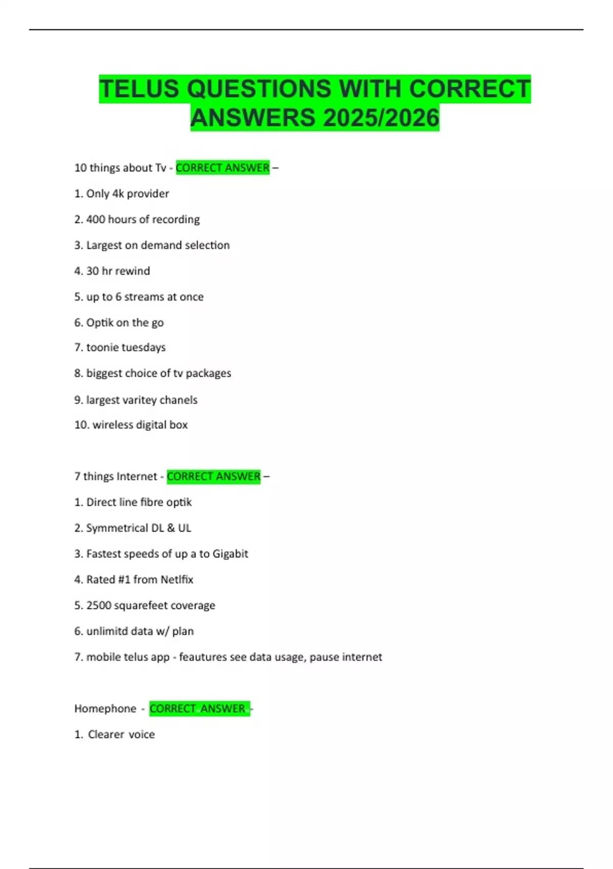 TELUS QUESTIONS WITH CORRECT