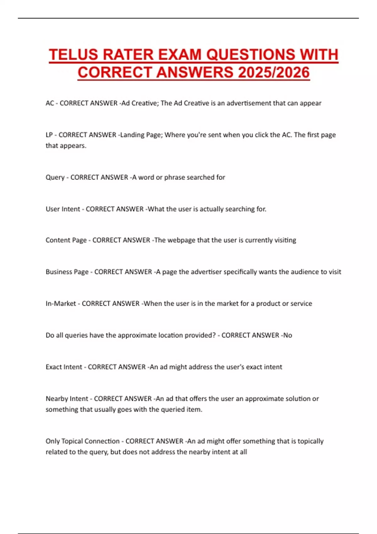 TELUS RATER EXAM QUESTIONS WITH CORRECT ANSWERS 2025/2026