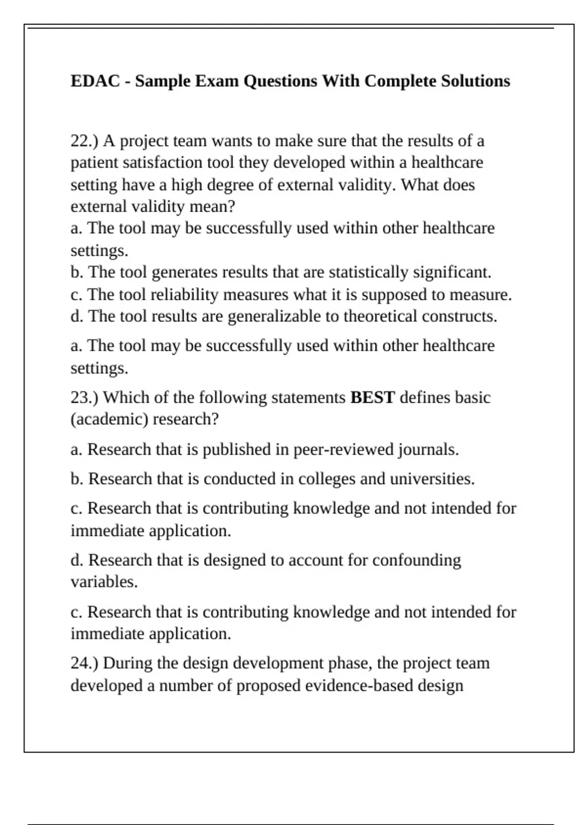 23.) Which of the following statements BEST defines basic