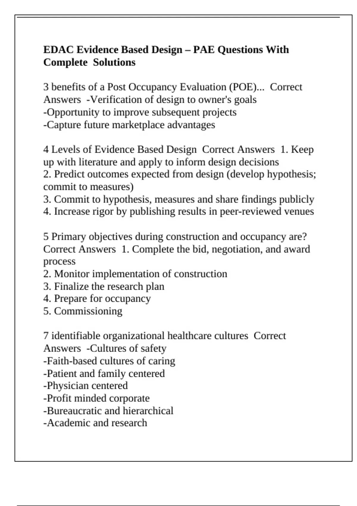EDAC Evidence Based Design – PAE Questions With Complete Solutions