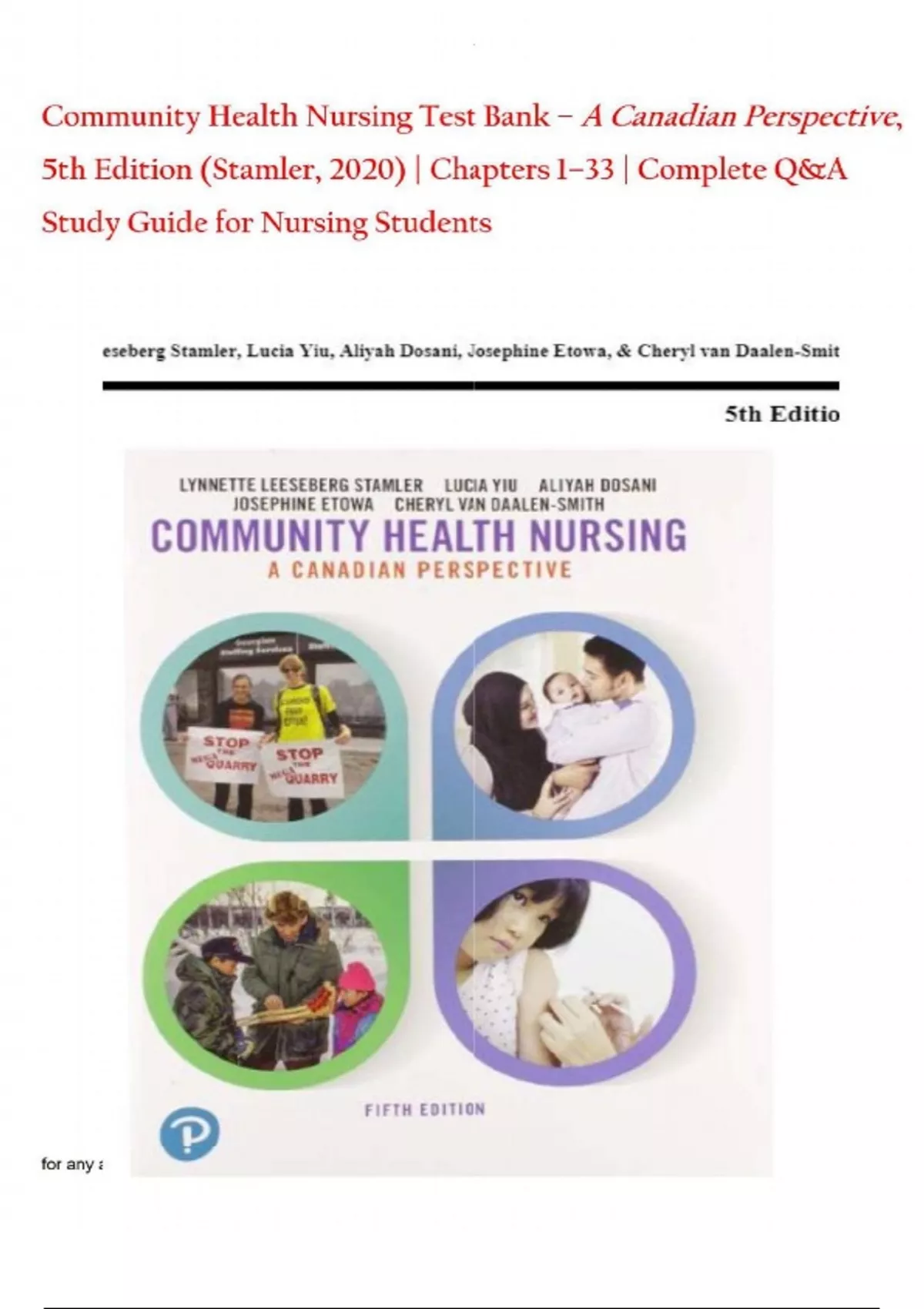 Test Bank - Community Health Nursing, A Canadian Perspective, 5th Edition (Stamler, 2020), Chapter 1 – 33 Test Bank - Community Health Nursing, A Canadian Perspective, 5th Edition (Stamler, 2020), Chapter 1 – 33 Test Bank - Community Health Nursing, A Canadian Perspective, 5th Edition (Stamler, 2020), Chapter 1 – 33 Test Bank - Community Health Nursing, A Canadian Perspective, 5th Edition (Stamler, 2020), Chapter 1 – 33