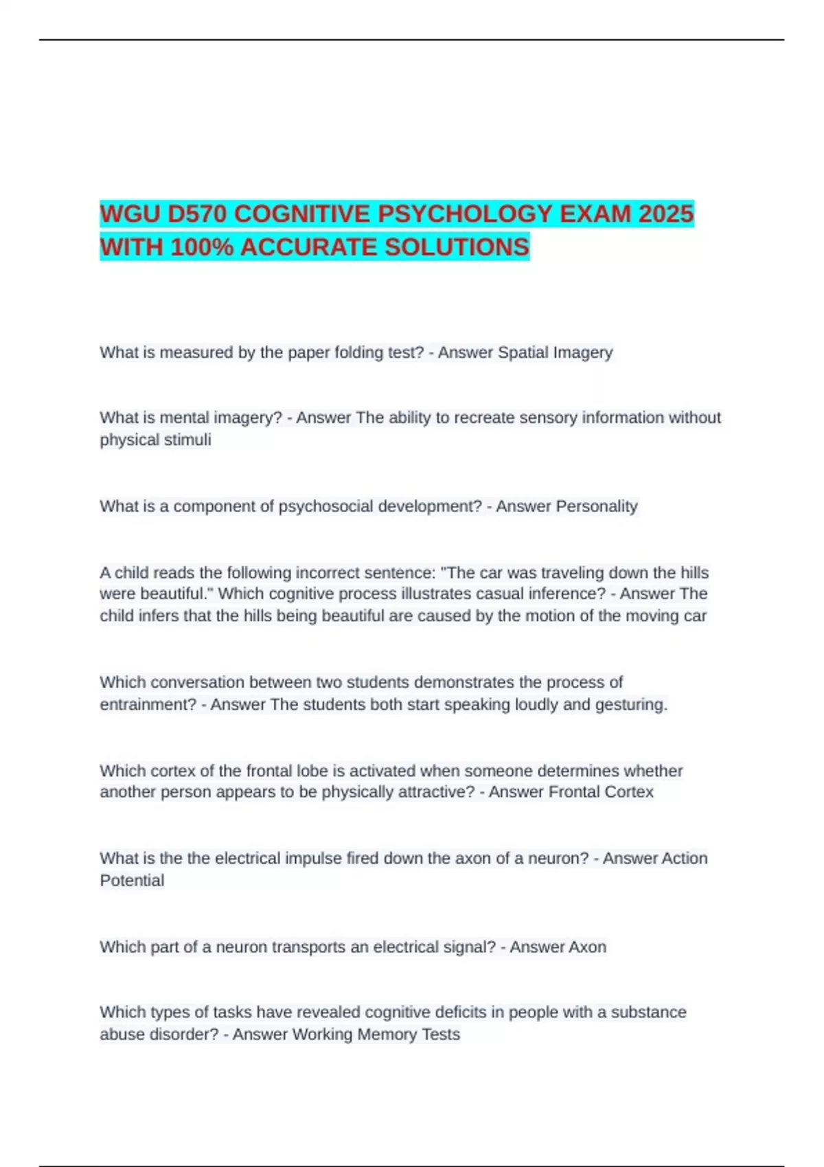 WGU D570 COGNITIVE PSYCHOLOGY EXAM 2025 WITH 100% ACCURATE SOLUTIONS