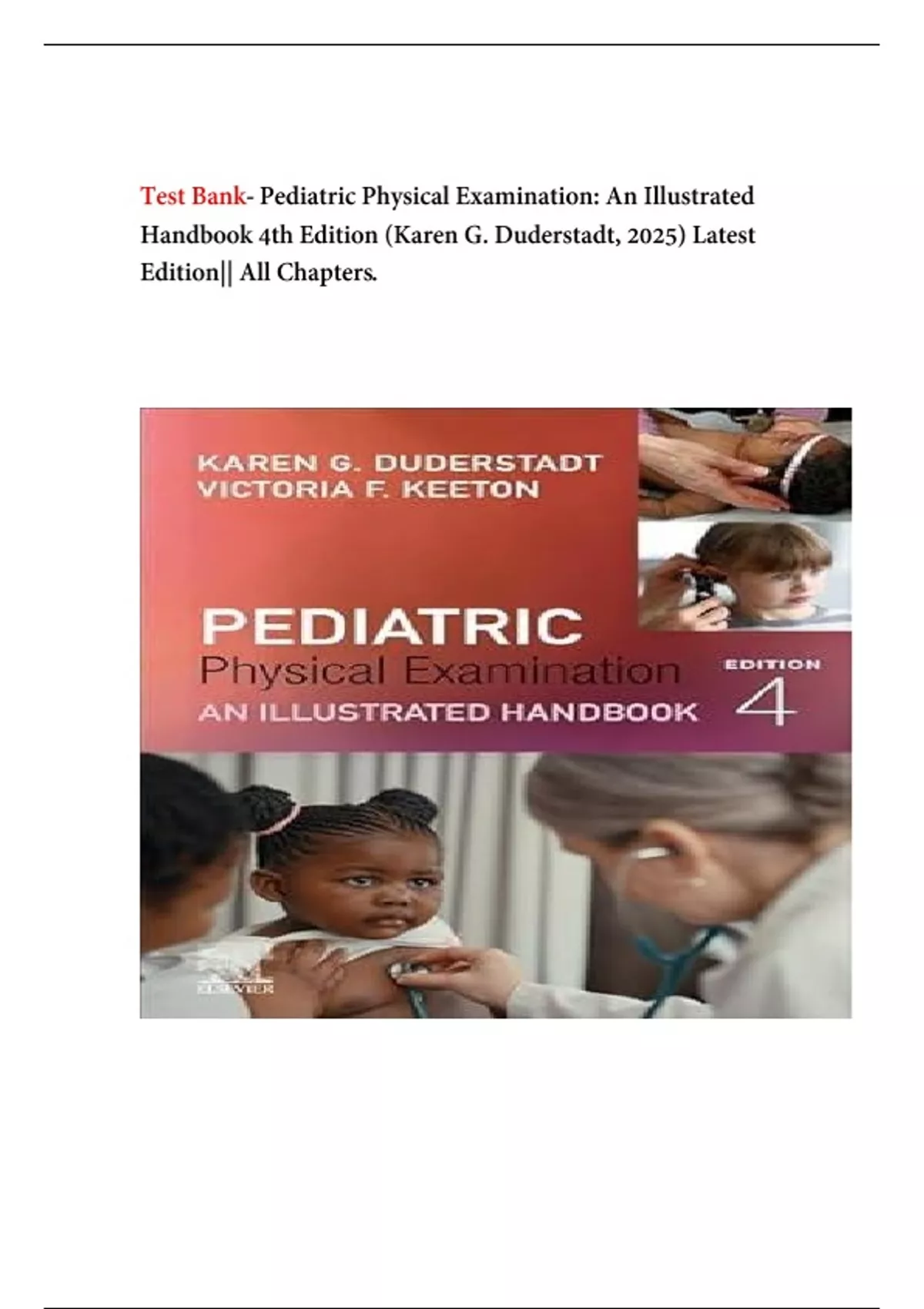 Test Bank- Pediatric Physical Examination: An Illustrated Handbook 4th Edition (Karen G. Duderstadt, 2025) Latest Edition|| All Chapters