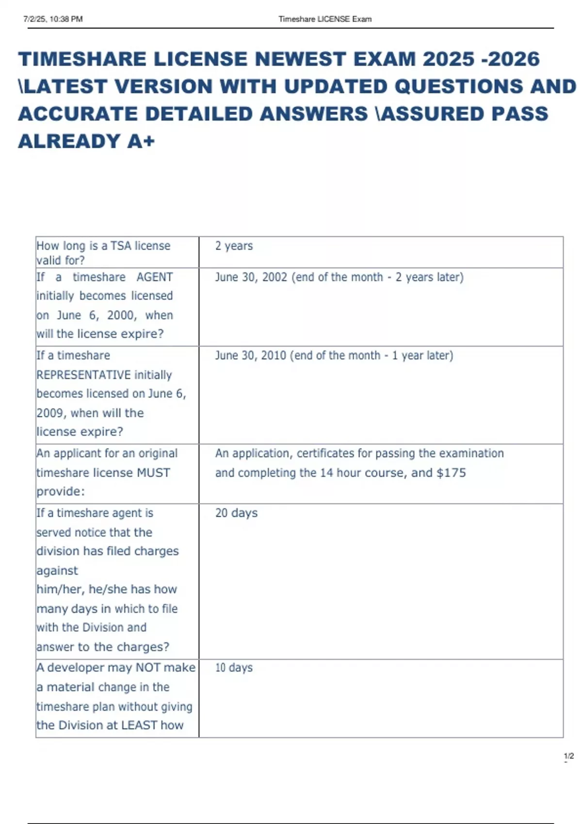 TIMESHARE LICENSE NEWEST EXAM 2025 -2026