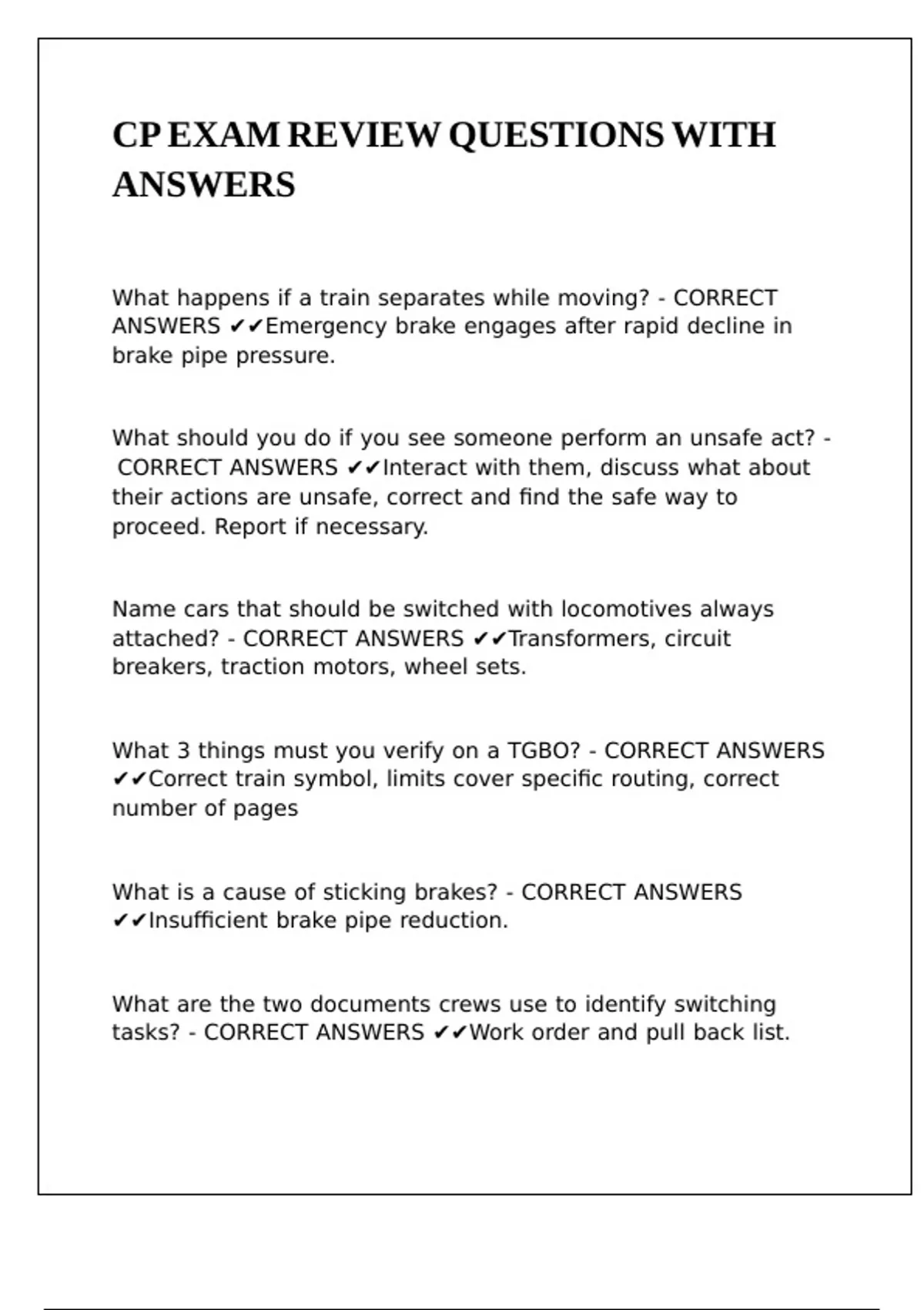 CP EXAM REVIEW QUESTIONS WITH ANSWERS