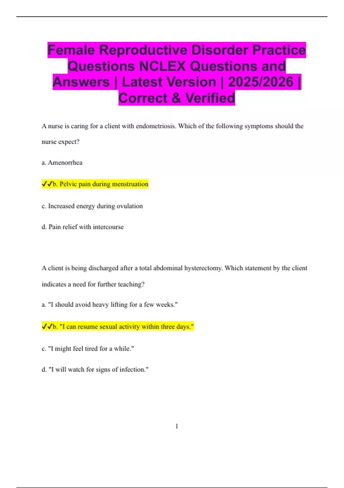 ✔✔b. Pelvic pain during menstruation