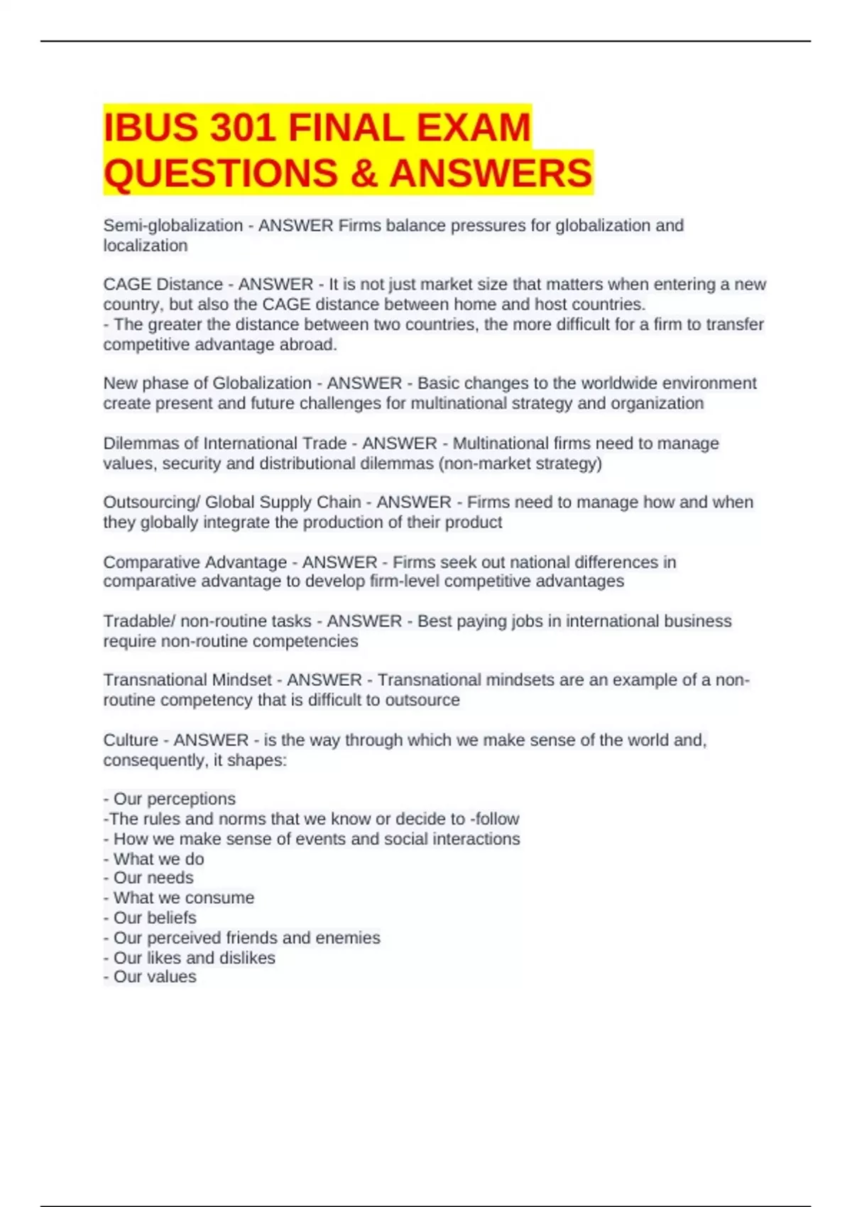 IBUS 301 FINAL EXAM QUESTIONS & ANSWERS