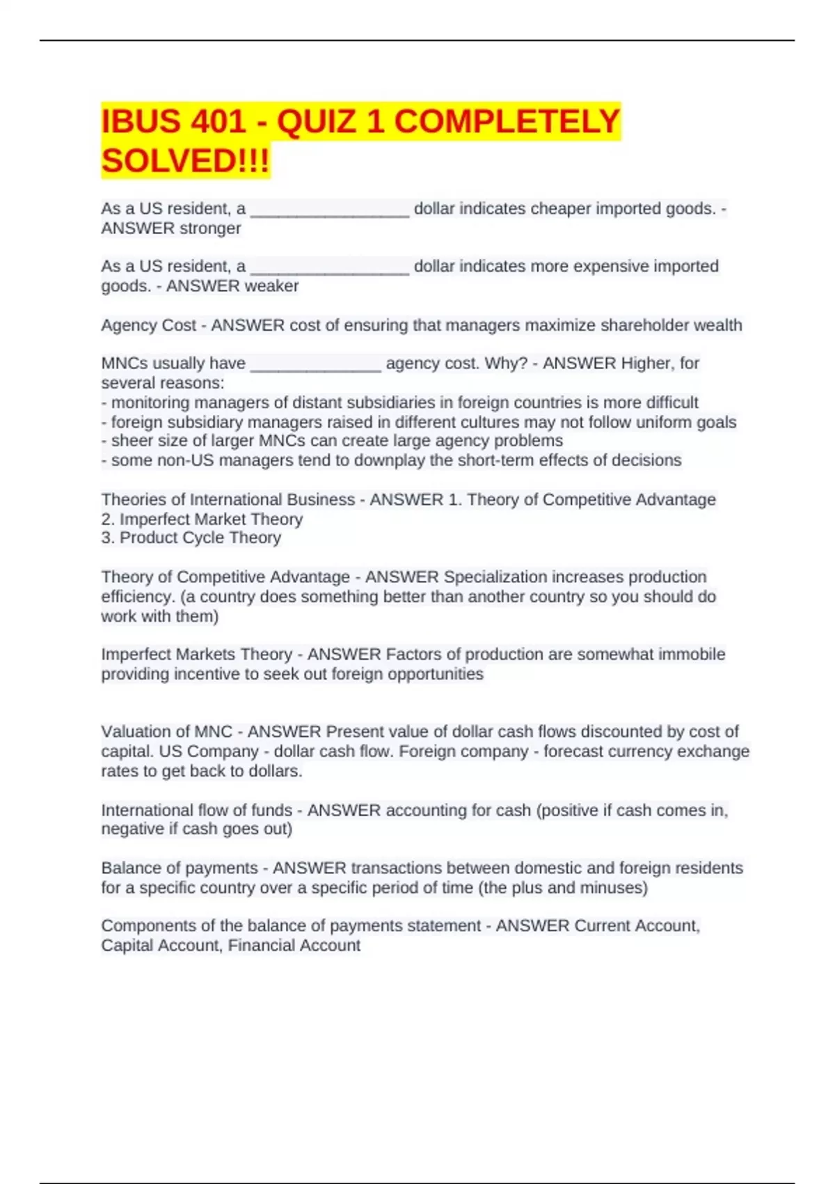 IBUS 401 - QUIZ 1 COMPLETELY SOLVED!!!