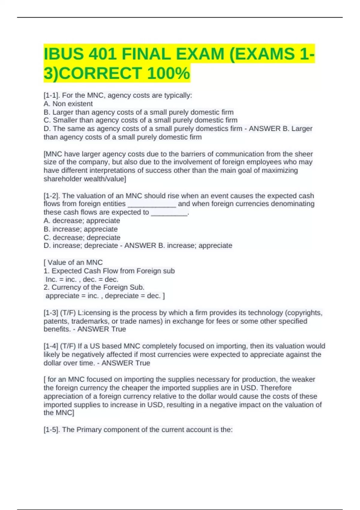 [1-2]. The valuation of an MNC should rise when an event causes the expected cash