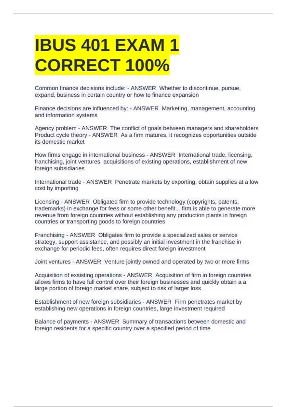 IBUS 401 EXAM 1 CORRECT 100%