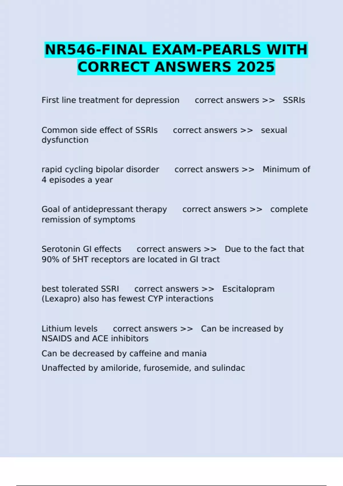 ,Lithium purpose correct answers >> Effective treatment for