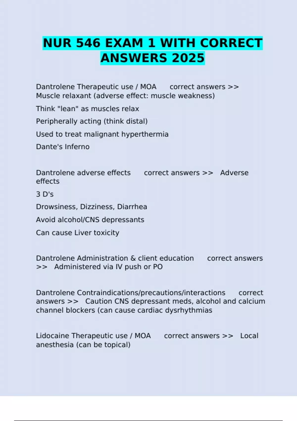 Dantrolene Administration & client education correct answers