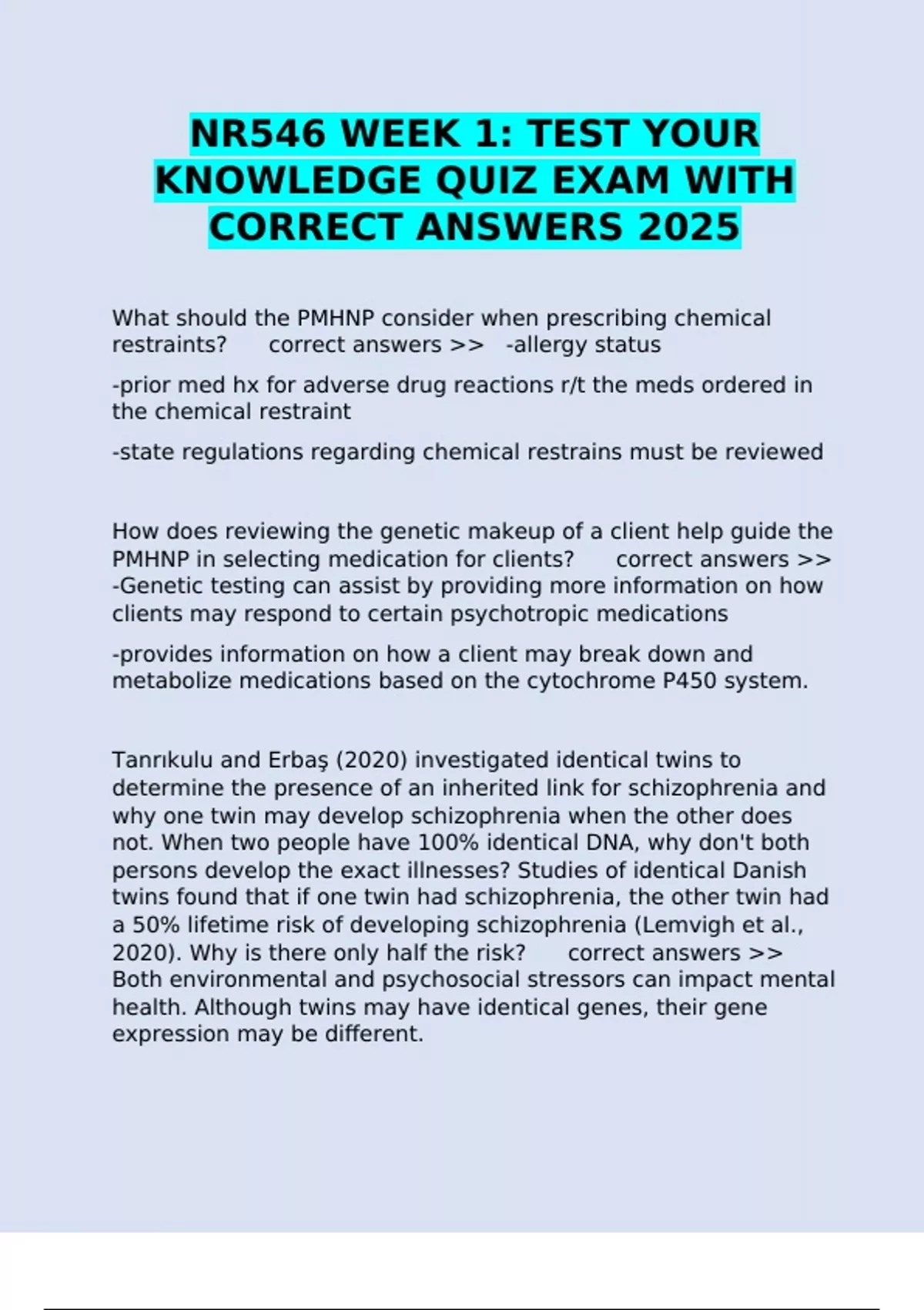 CORRECT ANSWERS 2025