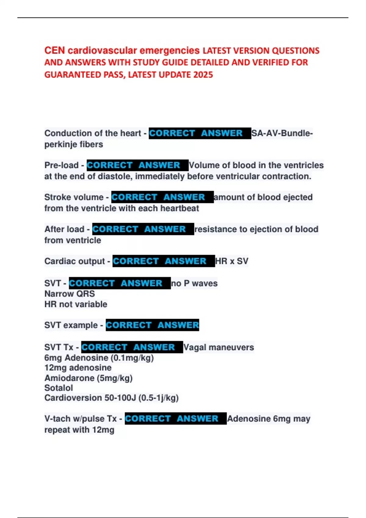 CEN cardiovascular emergencies LATEST VERSION QUESTIONS AND ANSWERS WITH STUDY GUIDE DETAILED AND VERIFIED FOR GUARANTEED PASS, LATEST UPDATE 2025