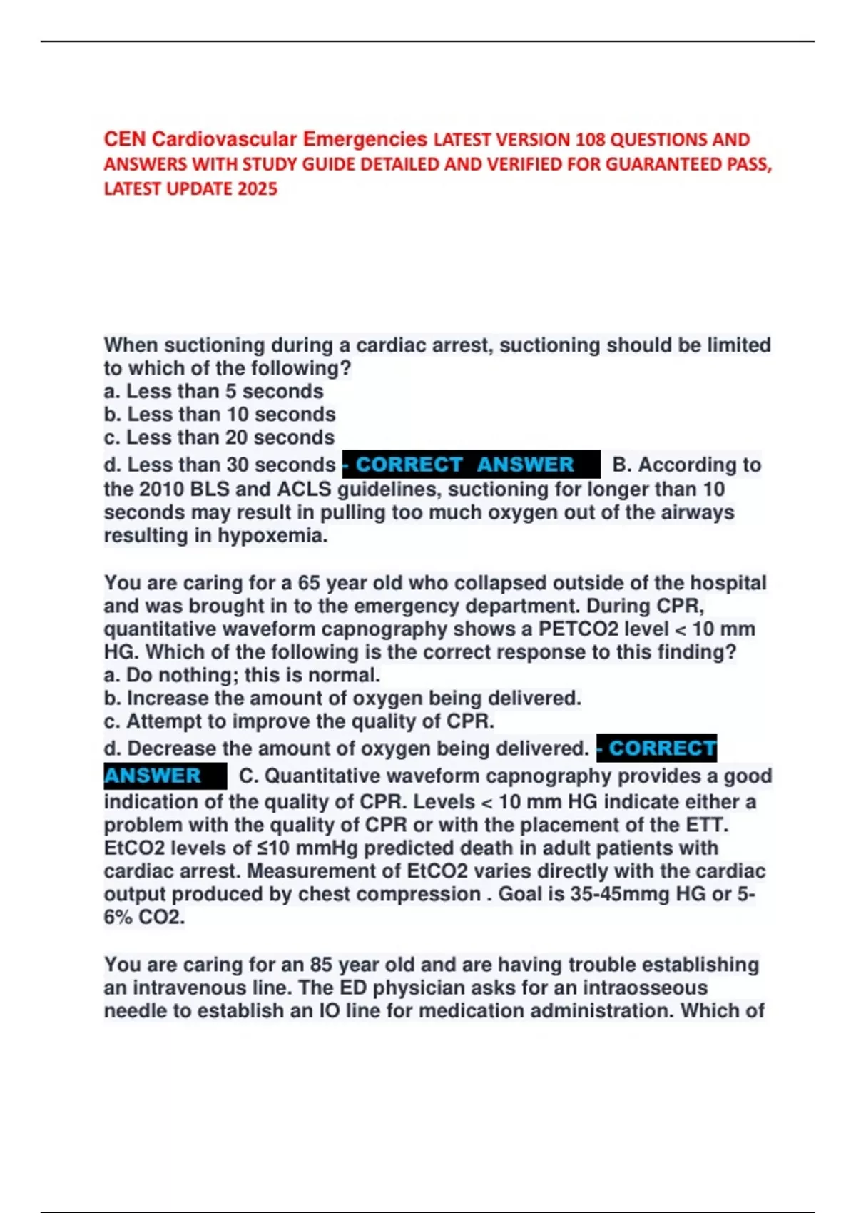 the 2010 BLS and ACLS guidelines, suctioning for longer than 10