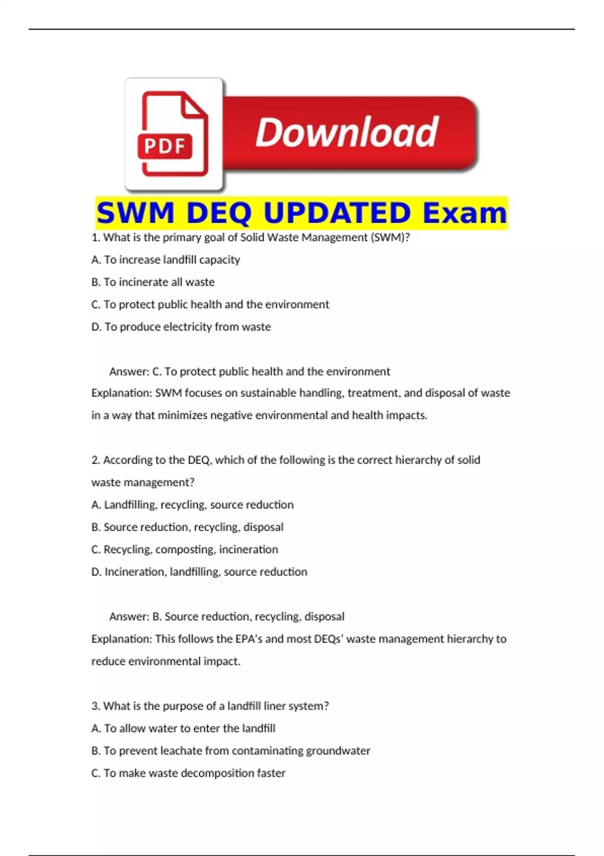 Explanation: This follows the EPA’s and most DEQs’ waste management hierarchy to