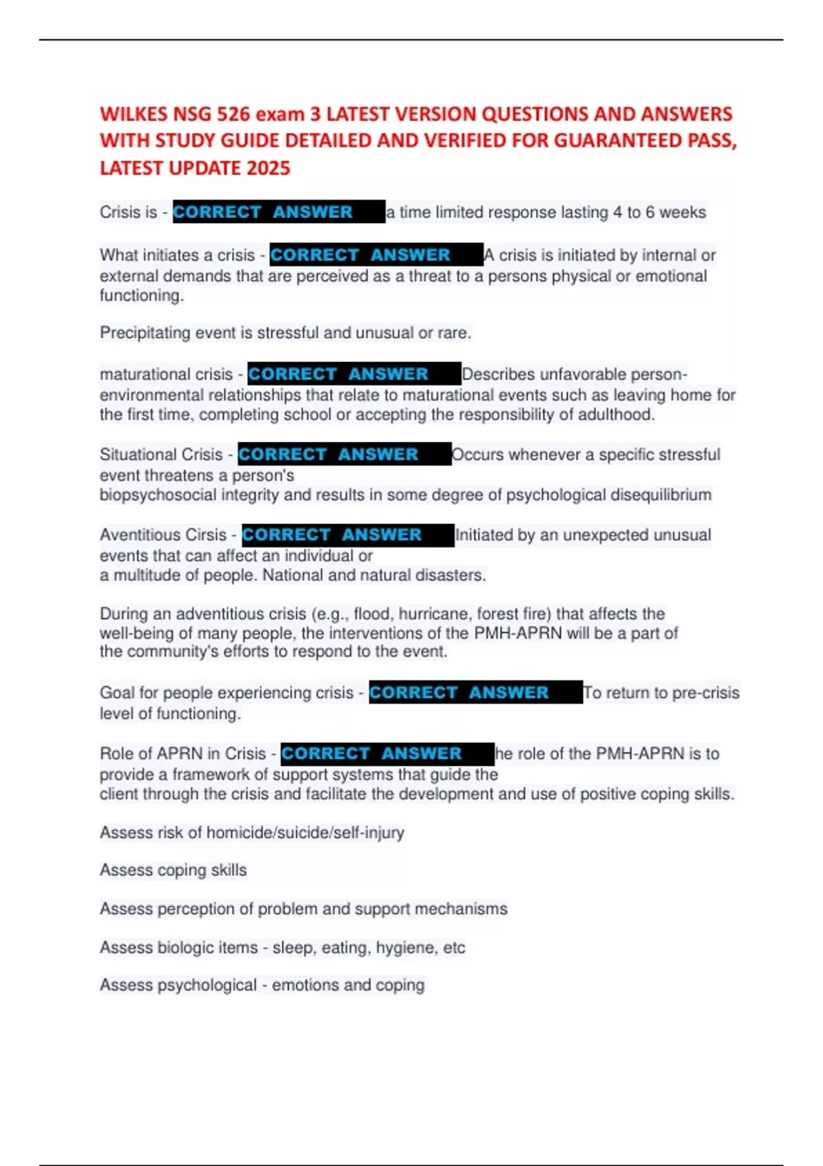 Crisis is - CORRECT ANSWER a time limited response lasting 4 to 6 weeks