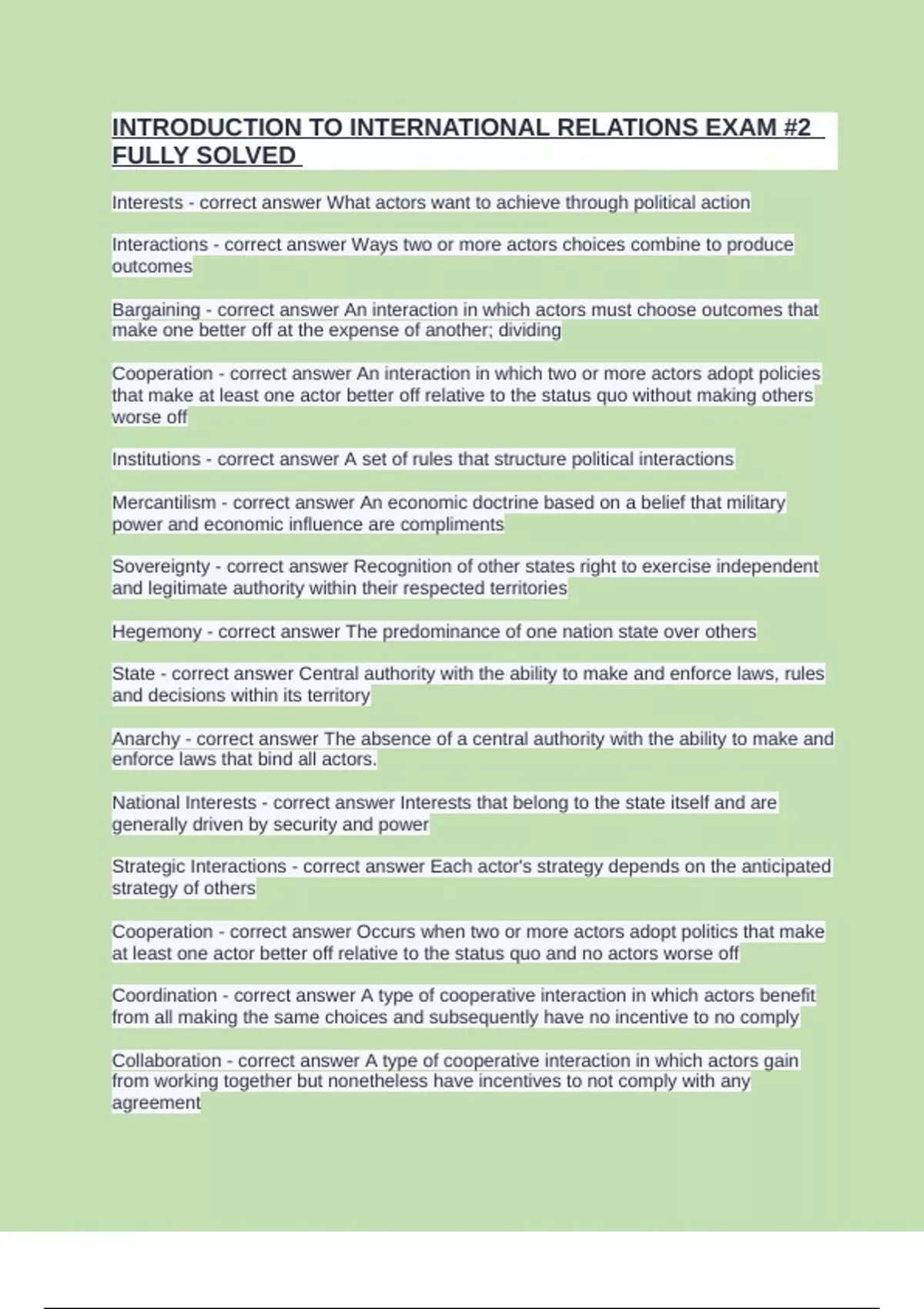 INTRODUCTION TO INTERNATIONAL RELATIONS EXAM -2 FULLY SOLVED