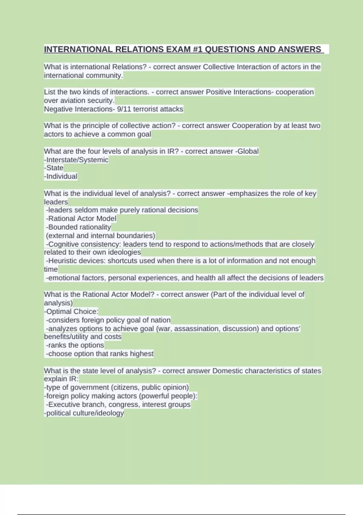 INTERNATIONAL RELATIONS EXAM #1 QUESTIONS AND ANSWERS