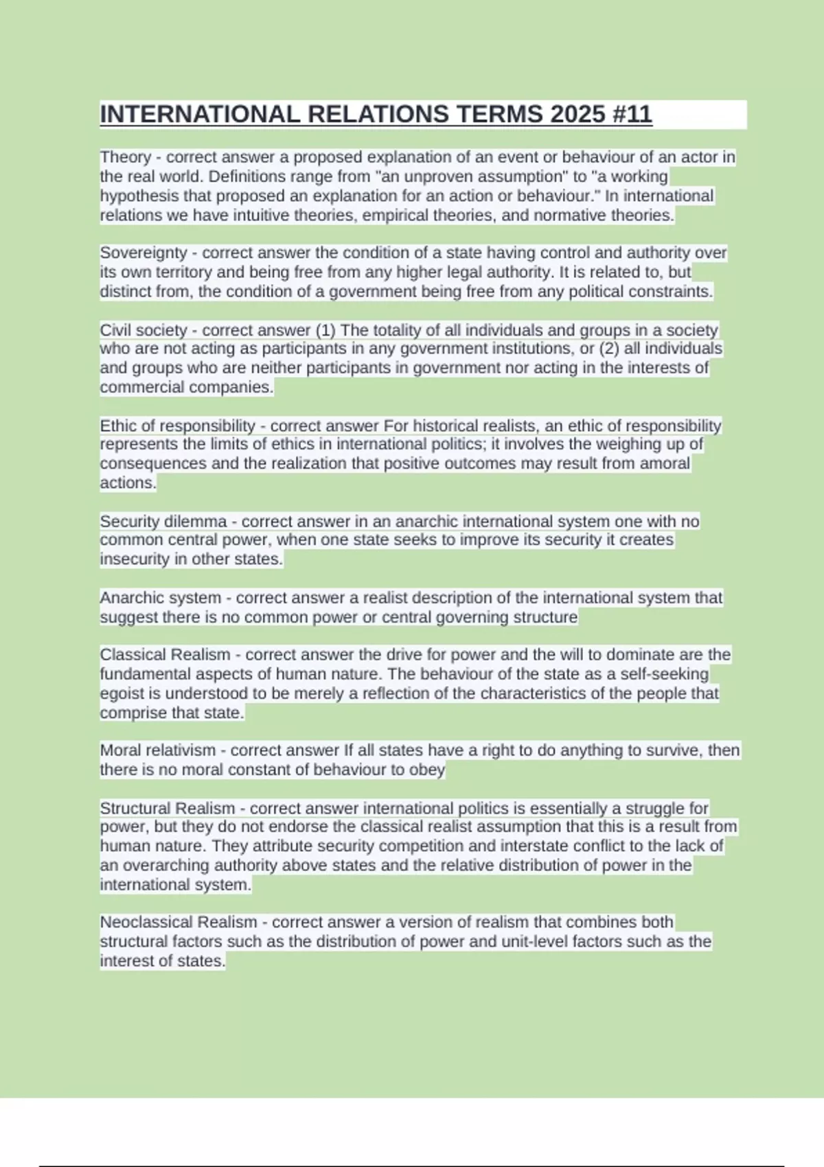 INTERNATIONAL RELATIONS TERMS 2025 #11