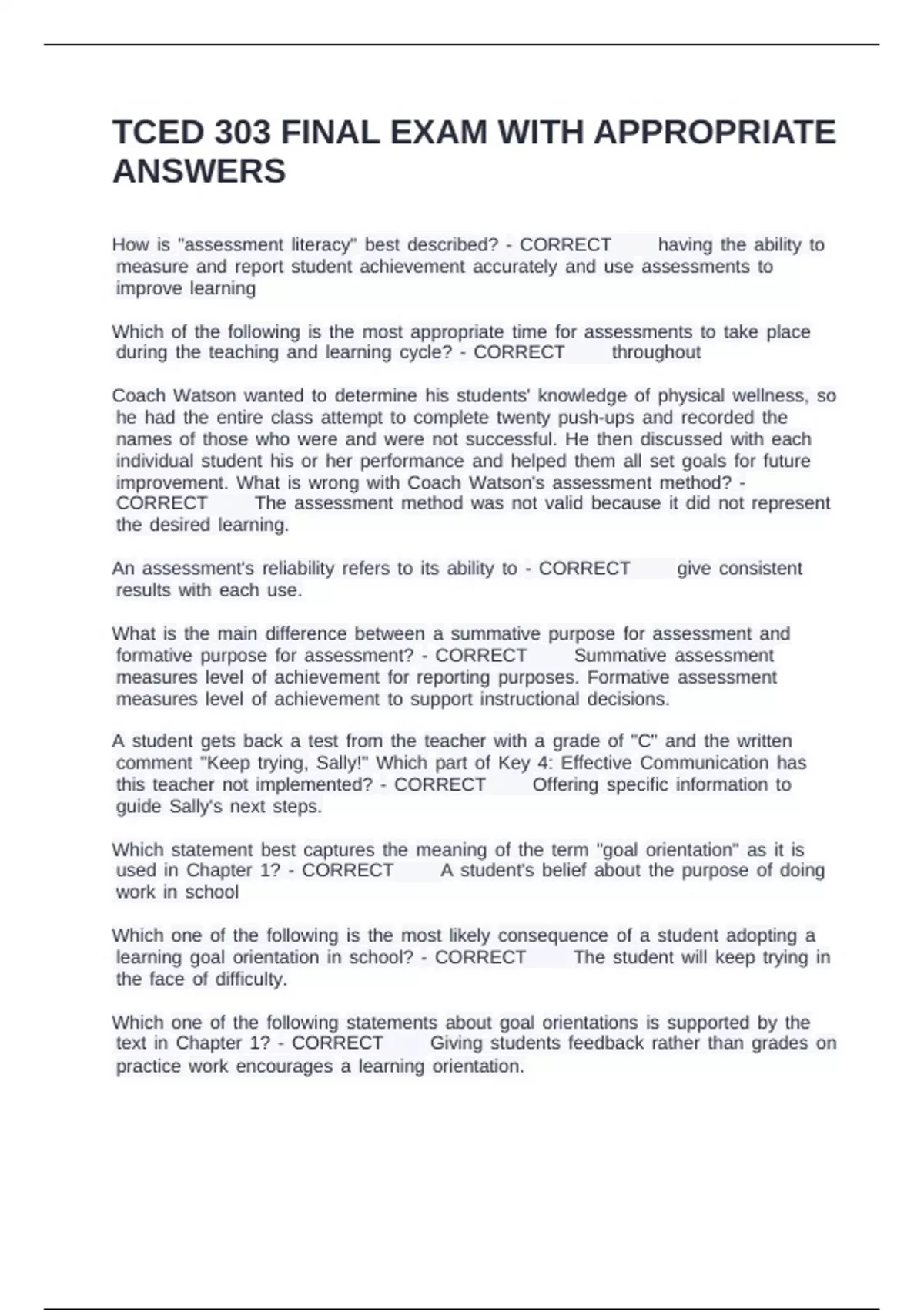 TCED 303 FINAL EXAM WITH APPROPRIATE