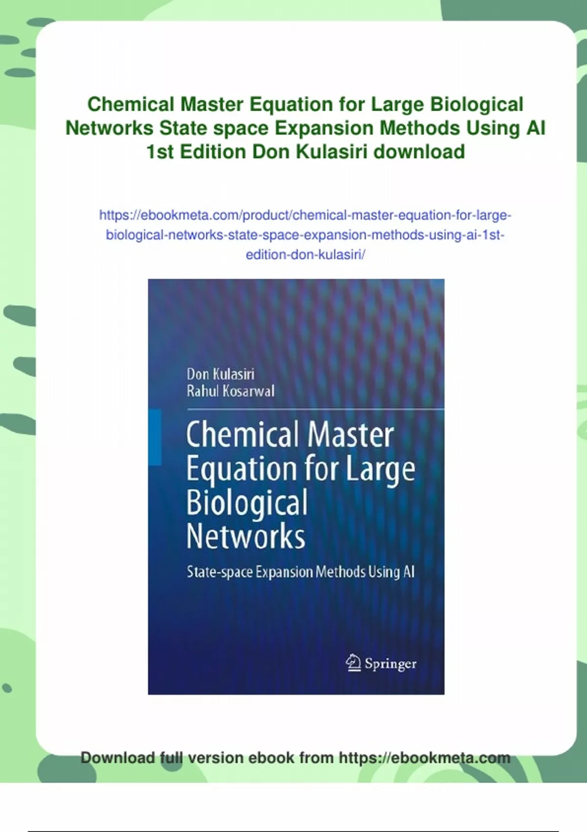 Summary Chemical Master Equation for Large Biological Networks State space Expansion Methods Using AI 1st Edition Don Kulasiri - Digital Download