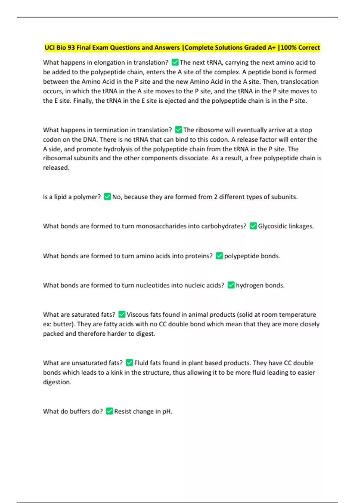 UCI Bio 93 Final Exam Questions and Answers |Complete Solutions Graded A+ |100% Correct