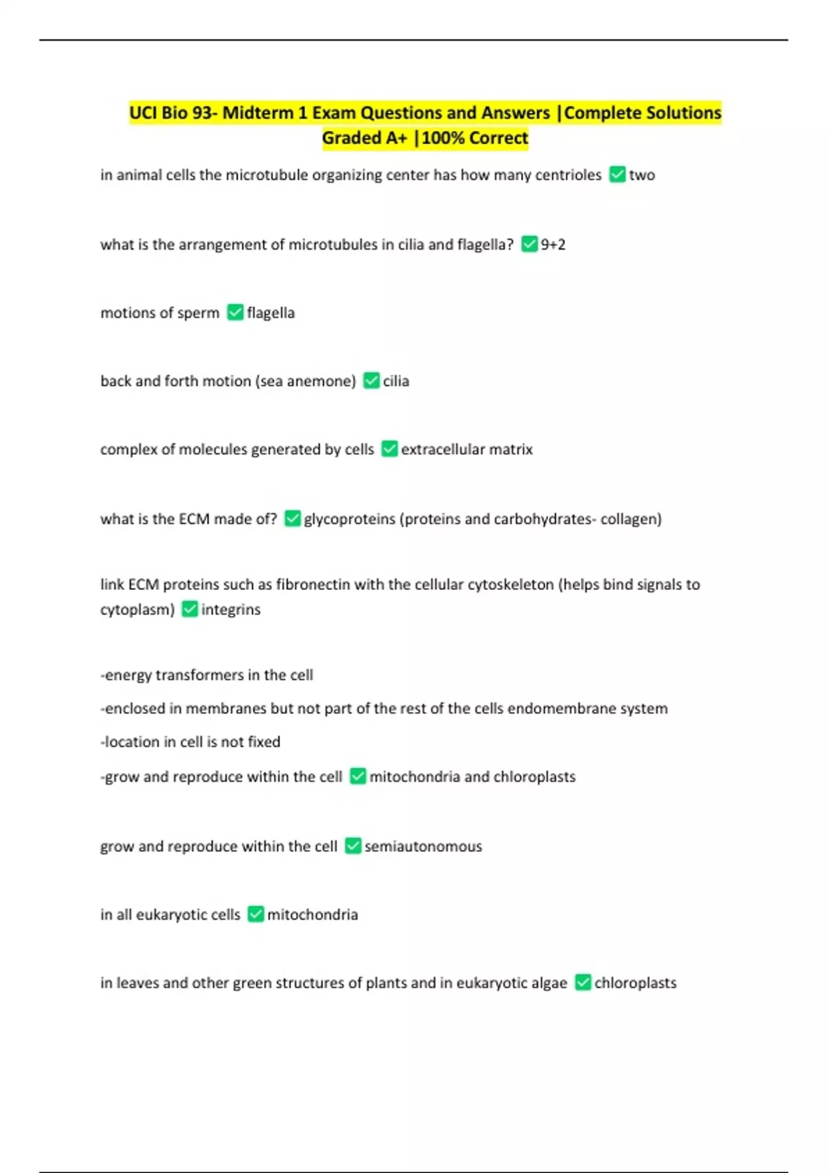 UCI Bio 93- Midterm 1 Exam Questions and Answers |Complete Solutions