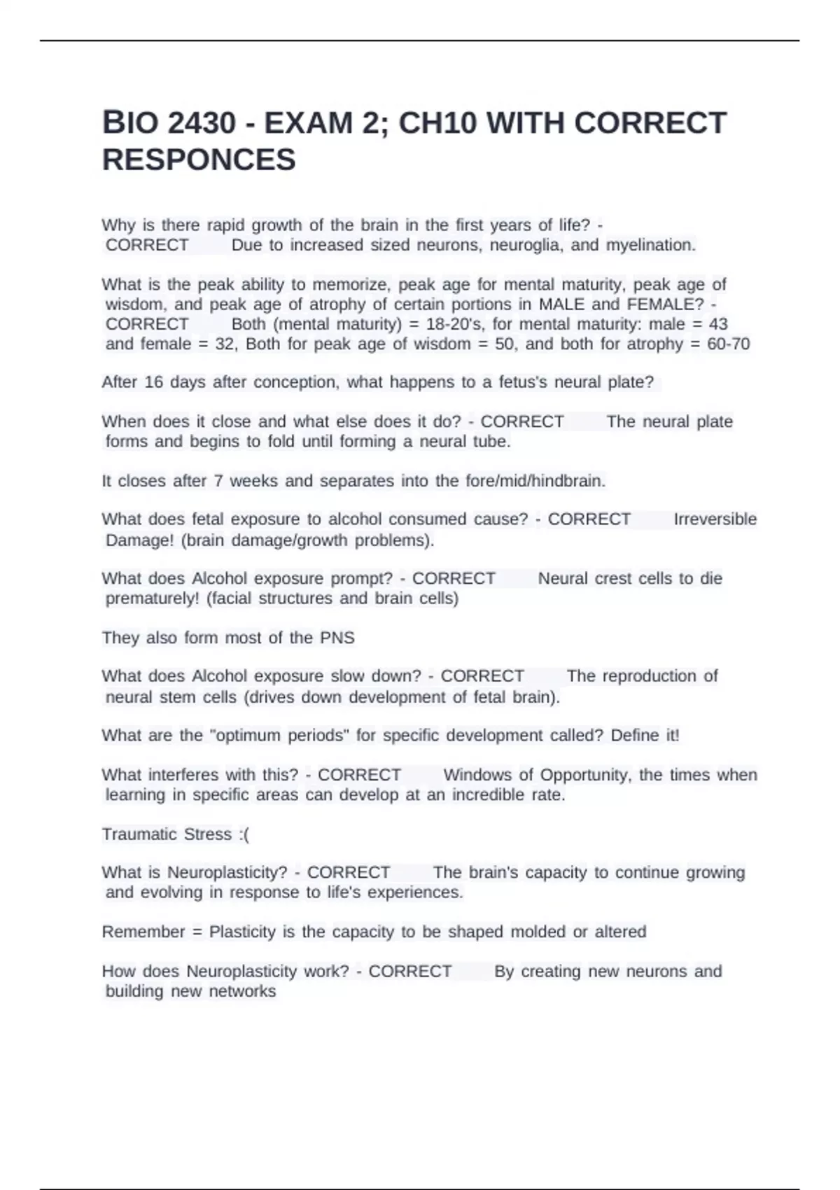 BIO 2430 - EXAM 2; CH10 WITH CORRECT