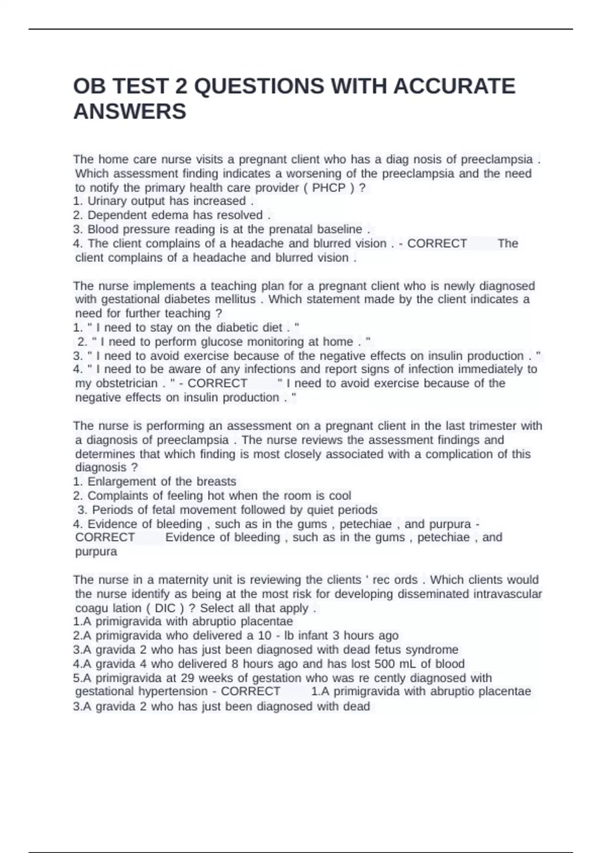 OB TEST 2 QUESTIONS WITH ACCURATE