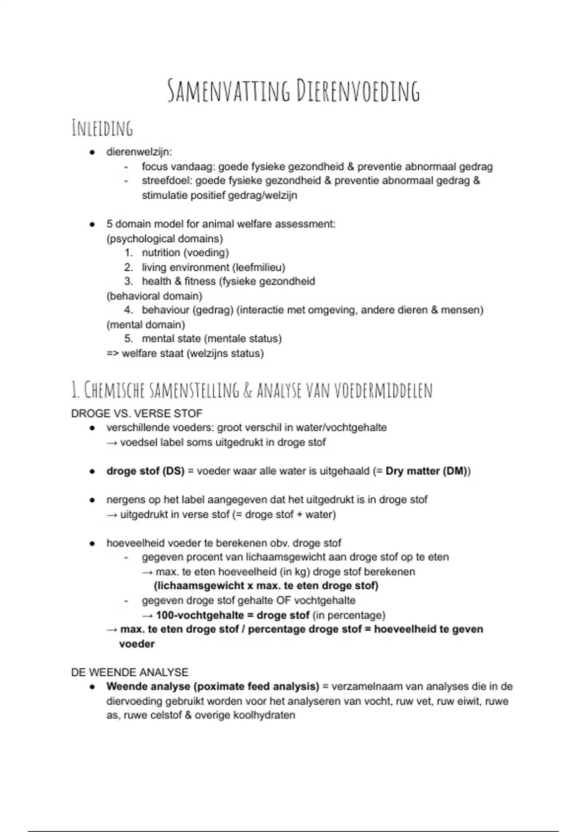 ● Weende analyse (poximate feed analysis) = verzamelnaam van analyses die in de