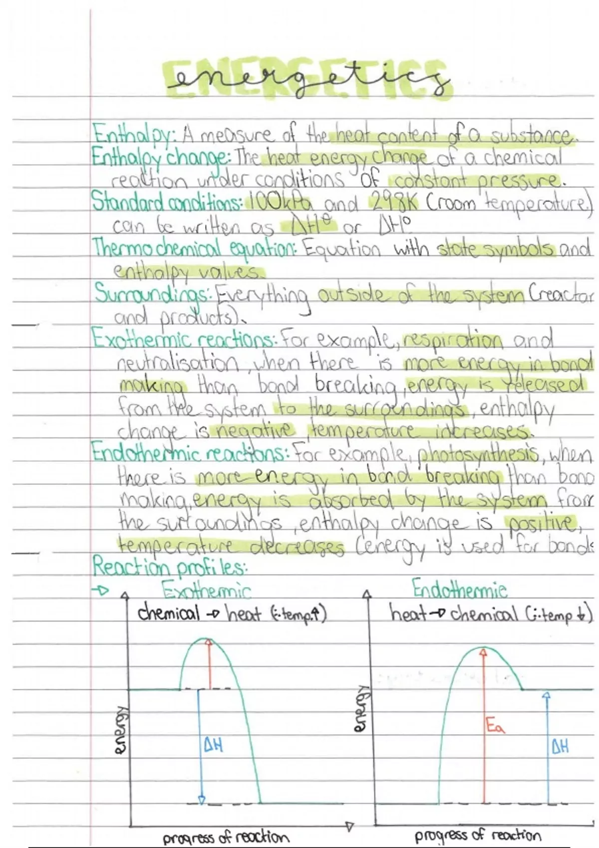 AQA A-Level chemistry notes covering all areas of energetics, including enthalpy, enthalpy change experiments, calorimetry, Hess' law, etc. Predicted A* quality.